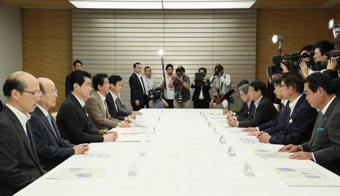 安倍总理在总理大臣官邸召开了有关第10号台风的相关阁僚会议。