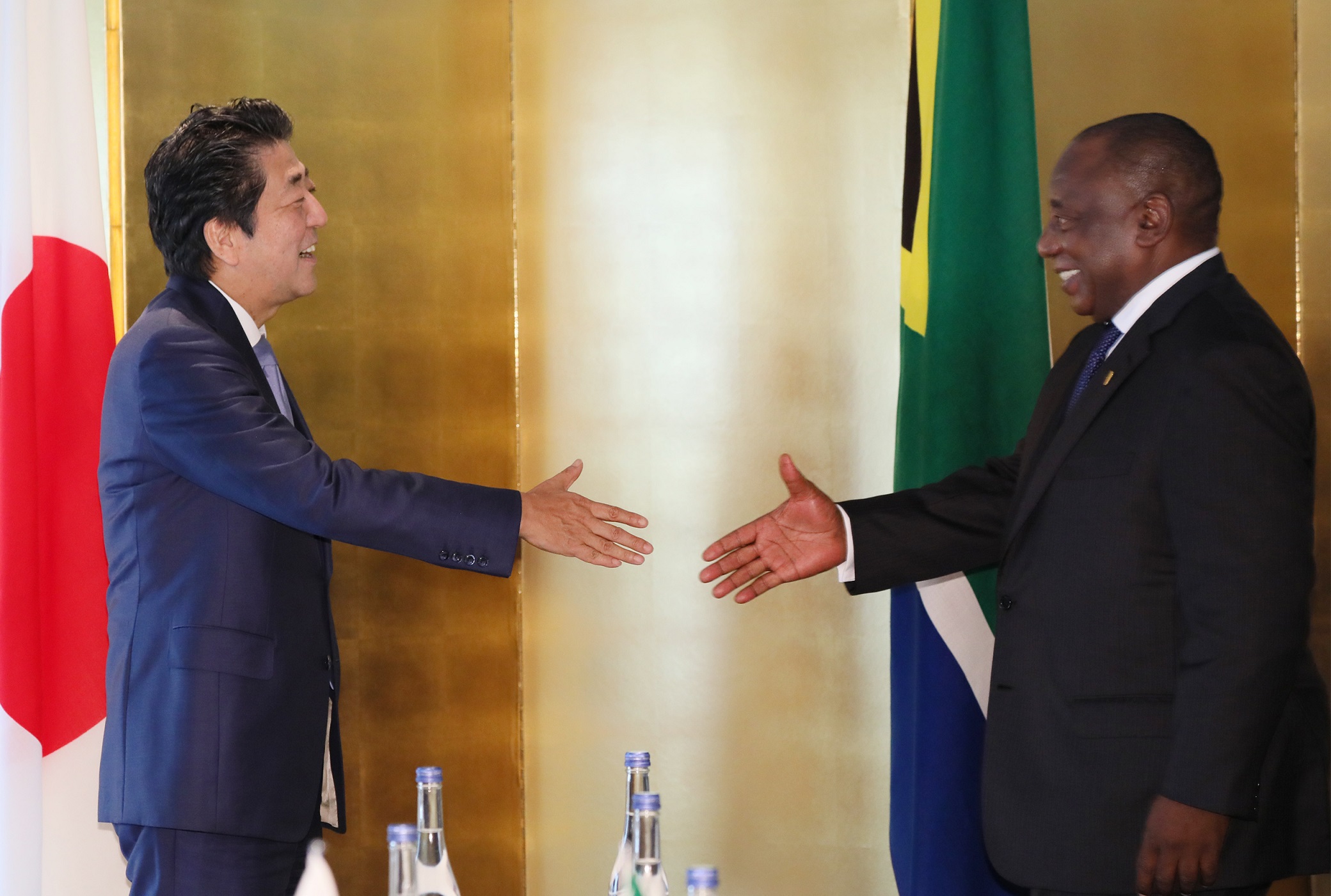 下午,总理出席了笹川非洲财团主办的研讨会及科学技术与人类未来的国际论坛(STS论坛),并发表了演讲。然后,参观了日本非洲商务论坛与博览会,与南非共和国总统马塔梅拉・西里尔・拉马福萨举行了会谈。接着,参加了合影,之后出席了开幕式及以“总论及非洲开发的未来”为议题的全体会议,并发表了基调演讲。