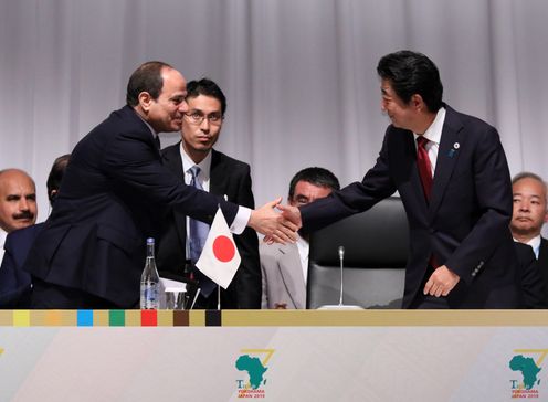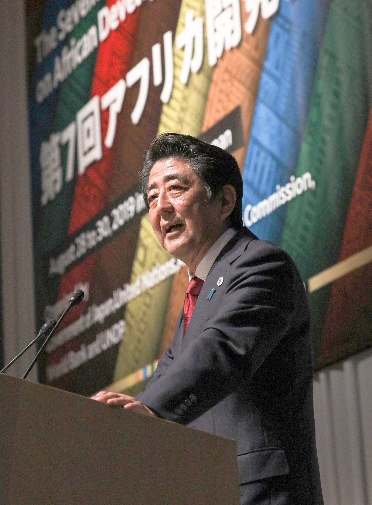 安倍总理为了举办TICAD7(第七届非洲开发会议)等,访问了神奈川县横滨市。