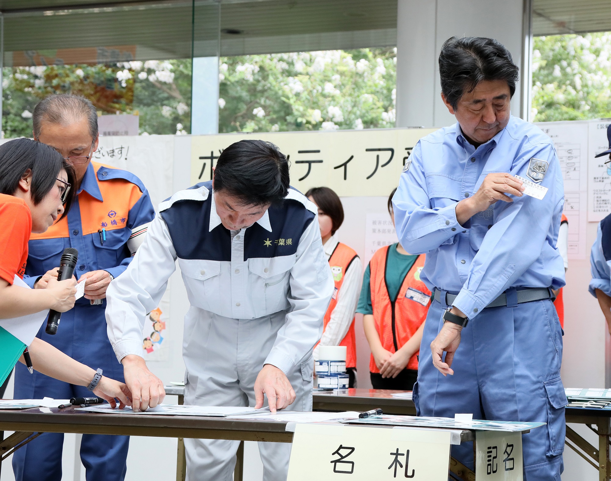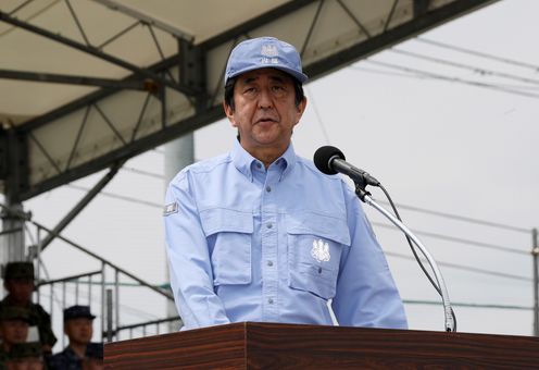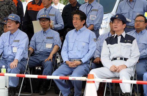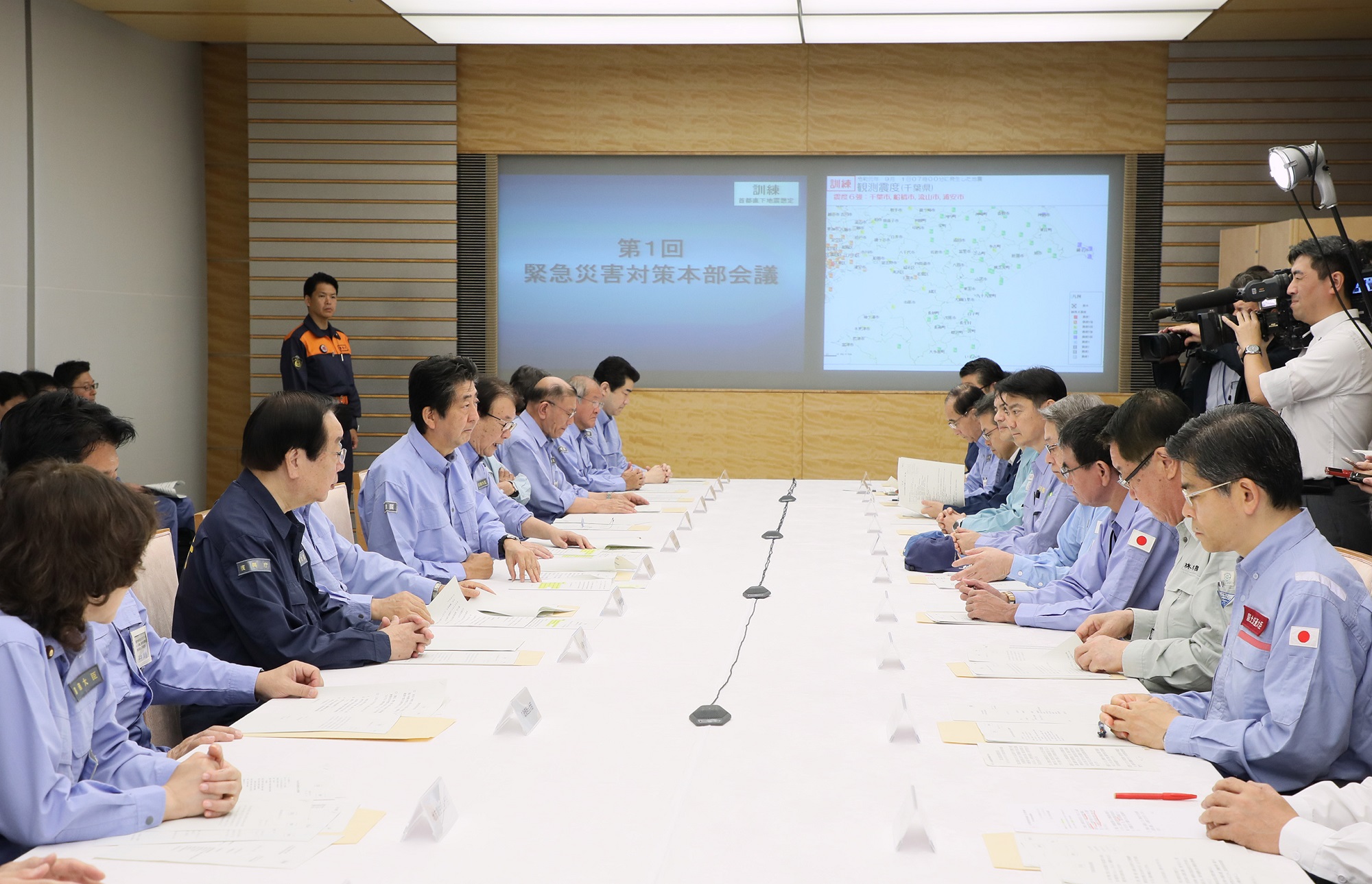 在以安倍总理为首的全体阁僚参与之下,举行了2019年度综合防灾训练。