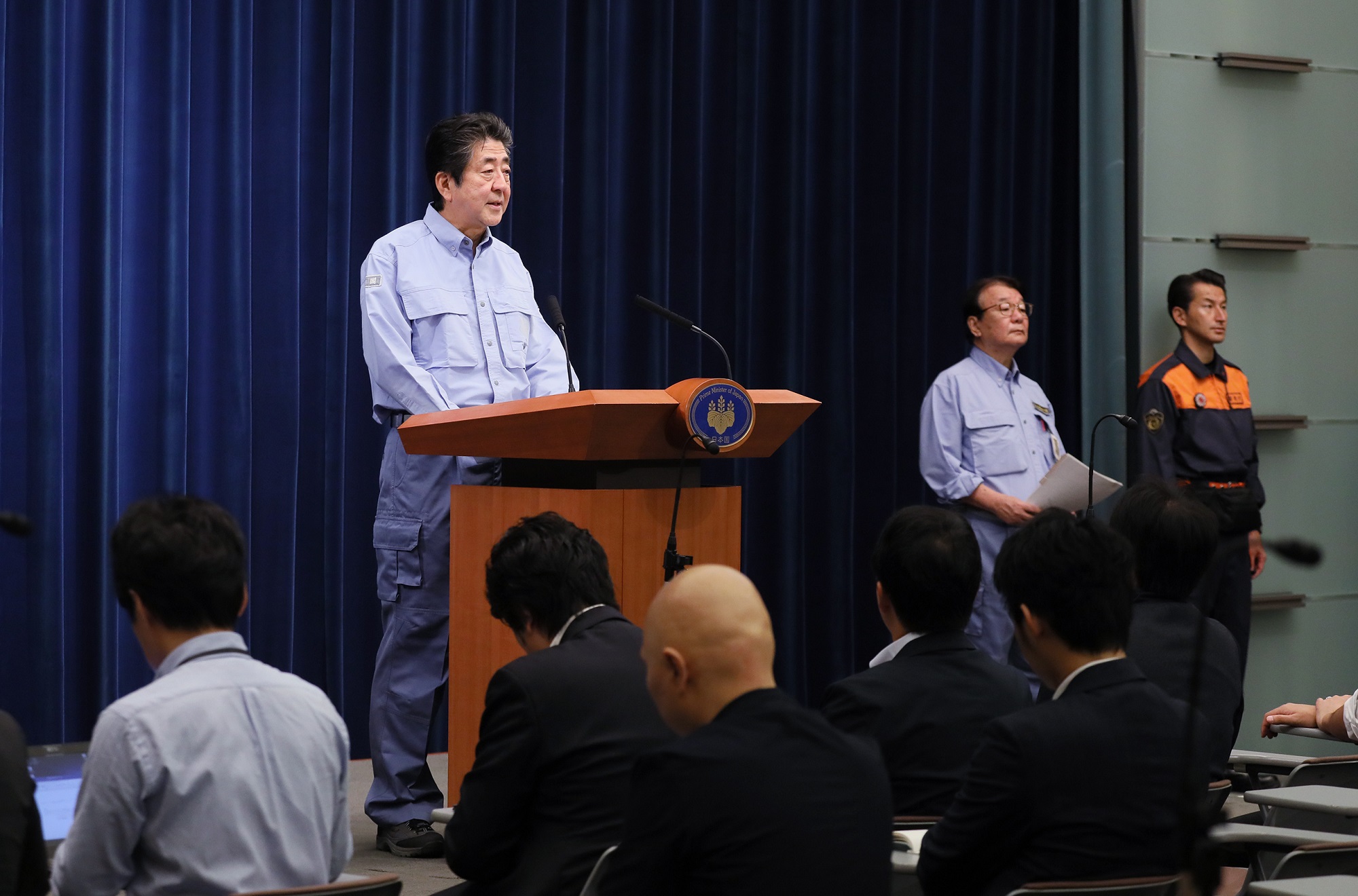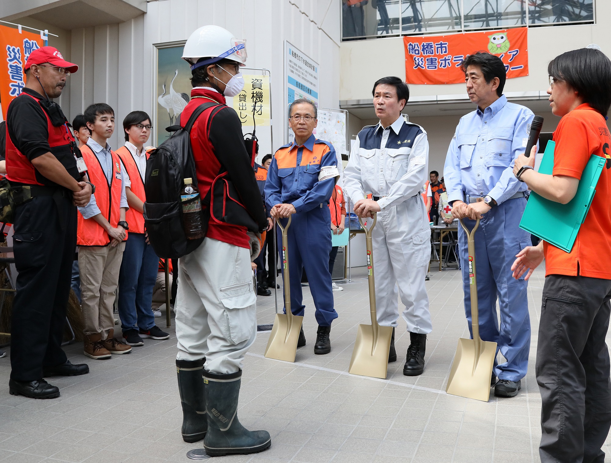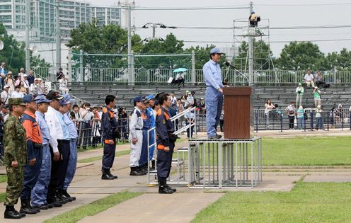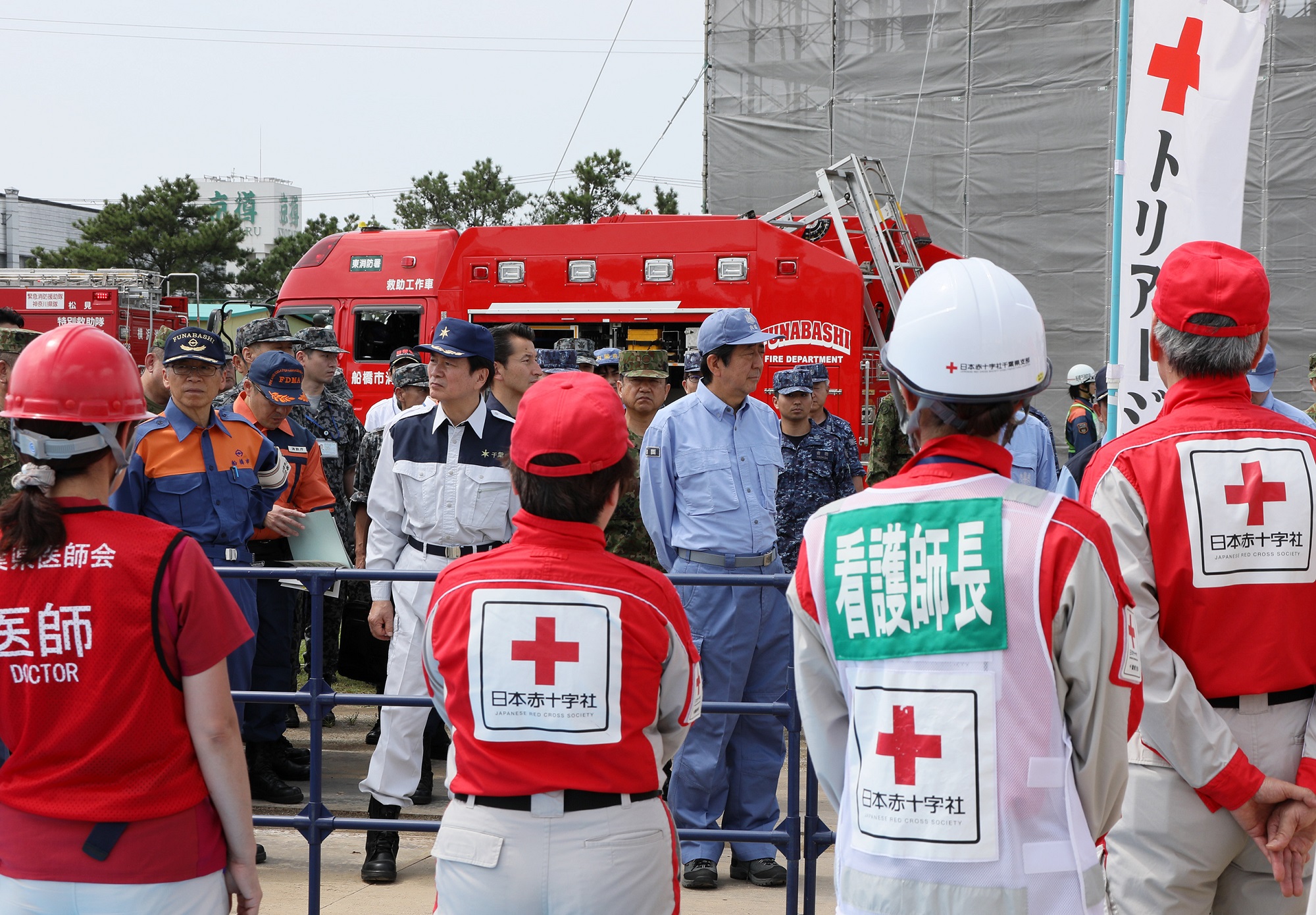 在以安倍总理为首的全体阁僚参与之下,举行了2019年度综合防灾训练。