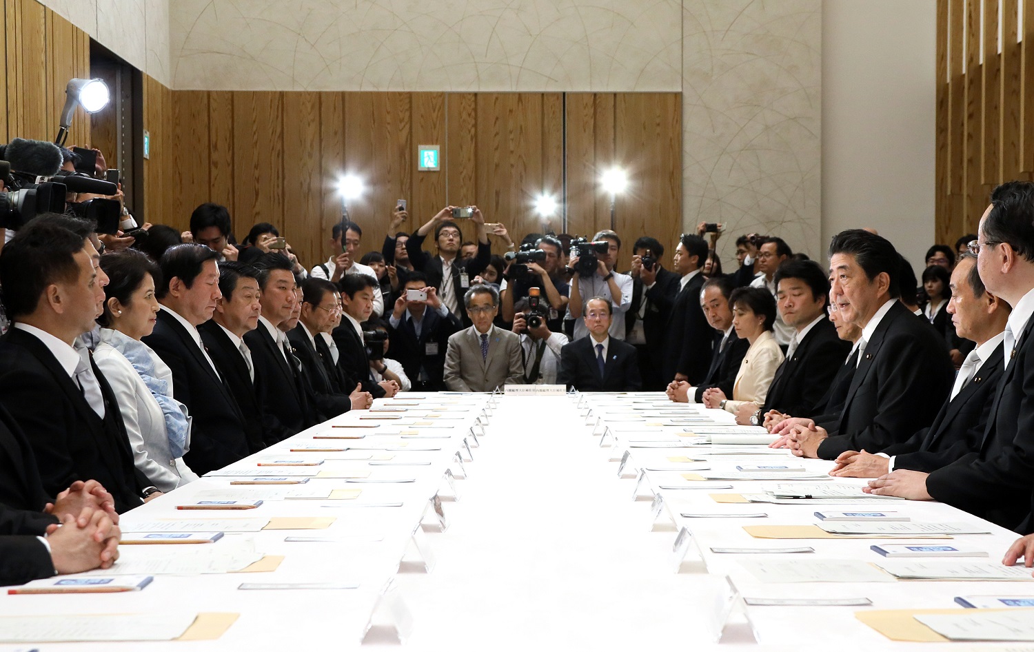 在内阁会议上,决定了第98代安倍总理第2届改造内阁的副大臣。安倍总理出席了首次副大臣会议。