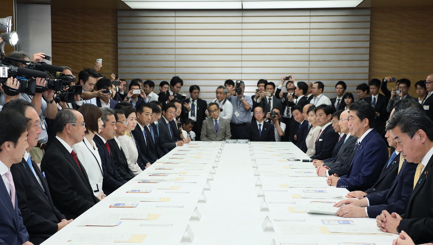 在内阁会议上,决定了第98代安倍总理第2届改造内阁的大臣政务官。安倍总理出席了首次大臣政务官会议。