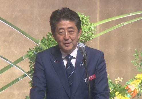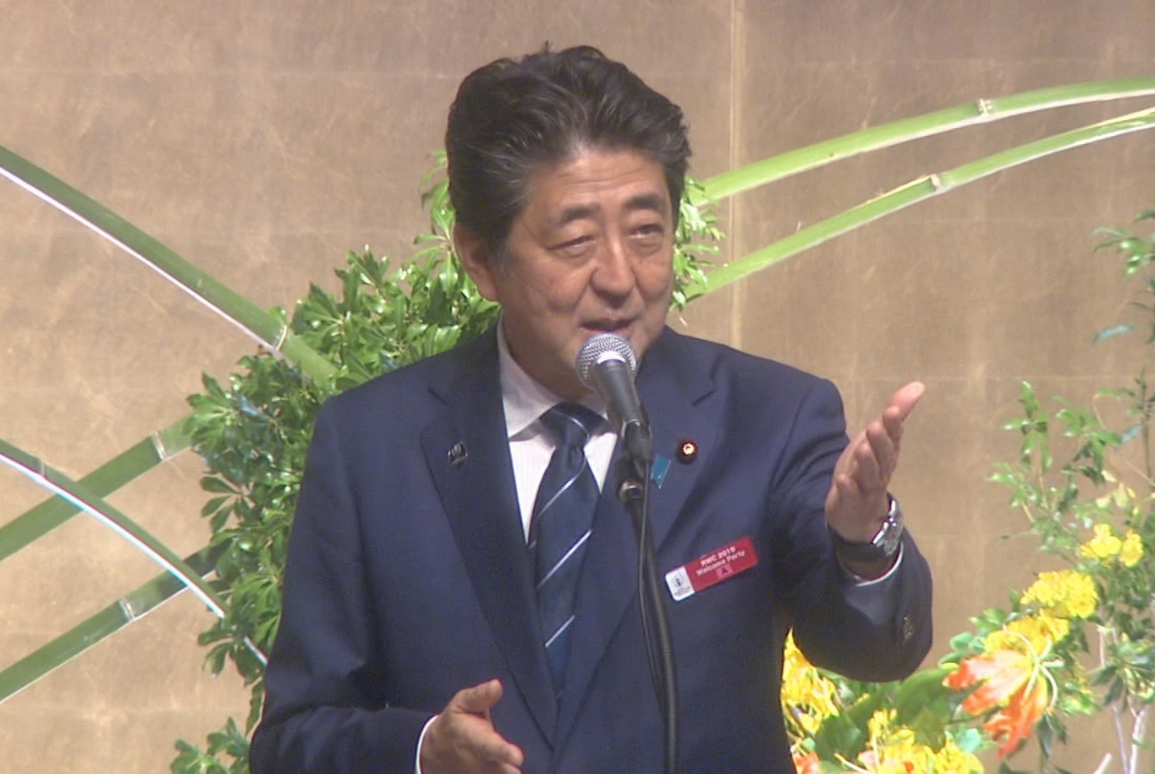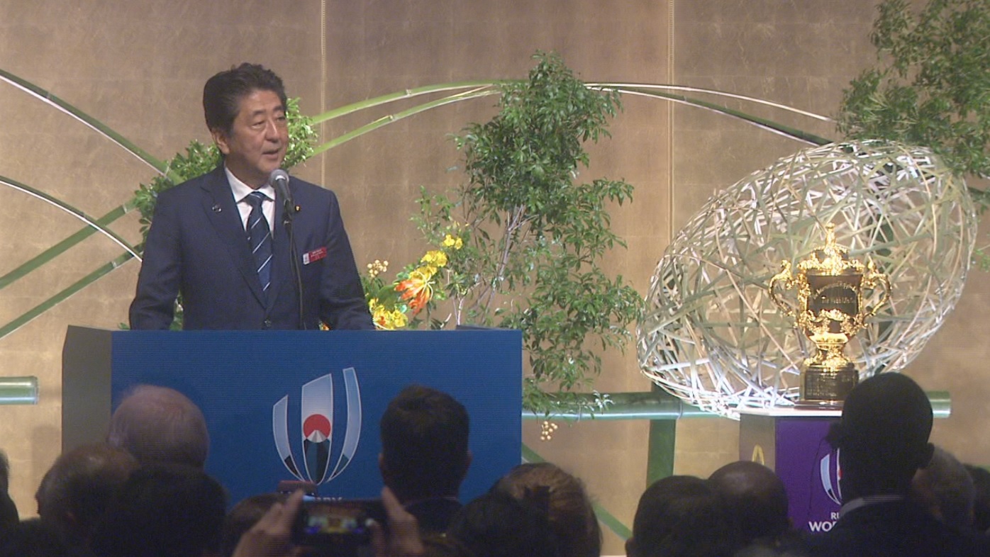 在秋篠宫皇嗣殿下和皇嗣妃殿下,以及彬子女王殿下的莅临之下,安倍总理出席了在东京都内举行的2019年日本橄榄球世界杯赛欢迎宴会。