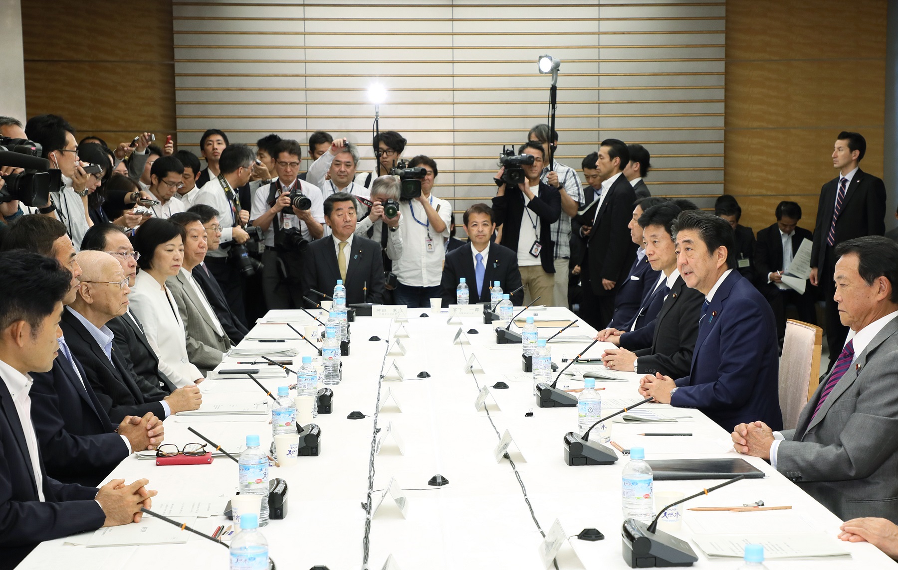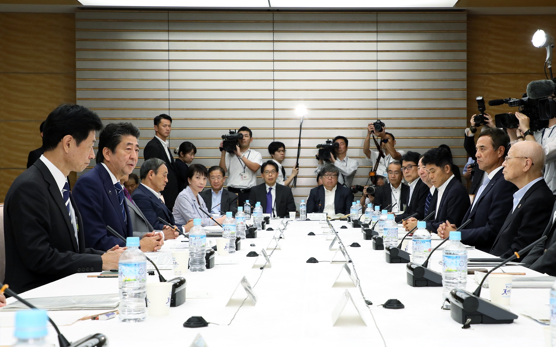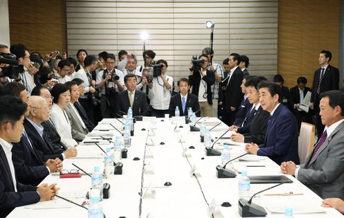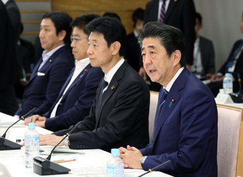 安倍总理在总理大臣官邸召开了第1次全民型社会保障制度探讨会议。