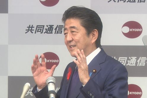 安倍总理出席了在东京都内举行的共同通信加盟社编辑局长会议,并发表了演讲。