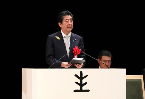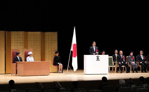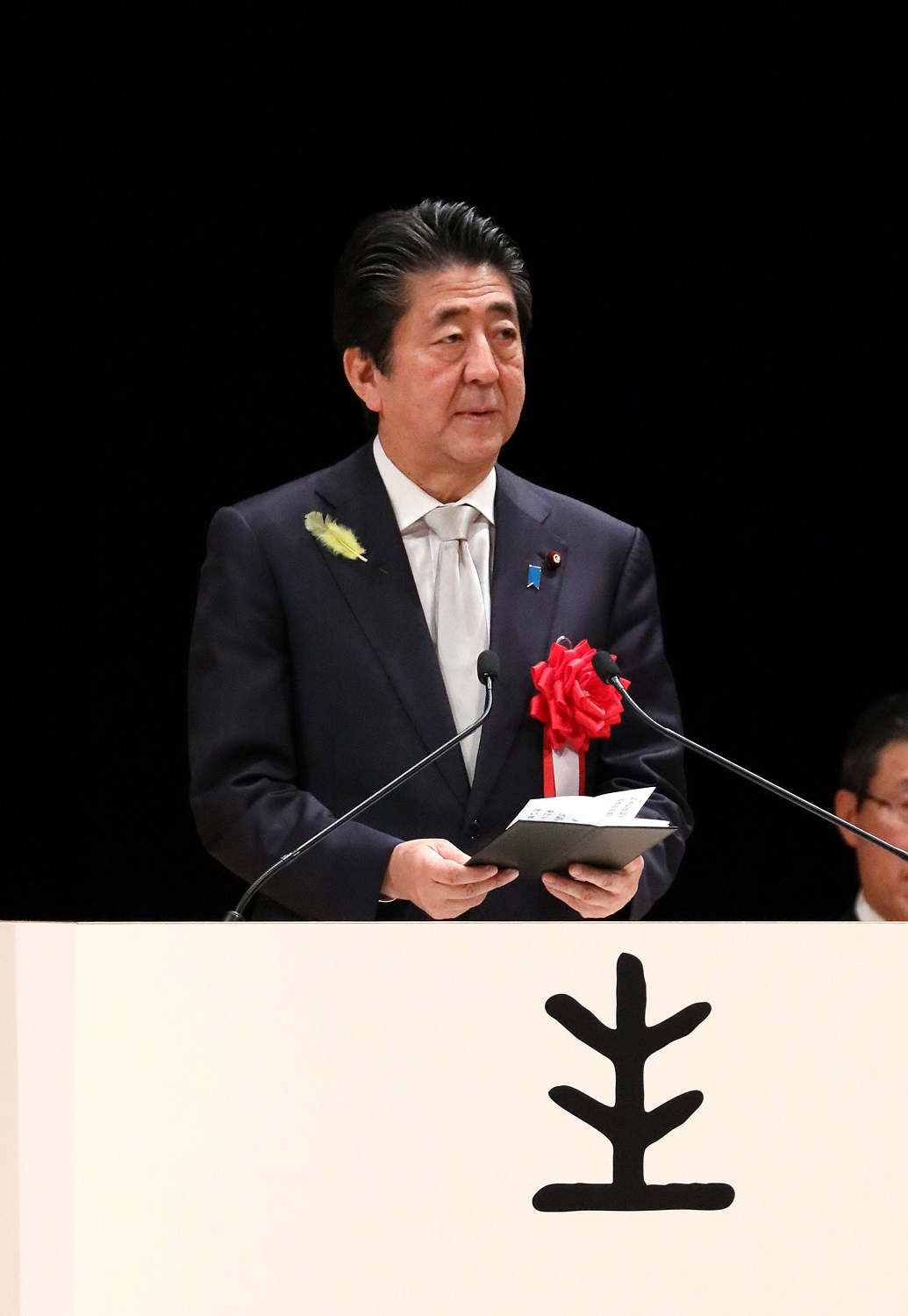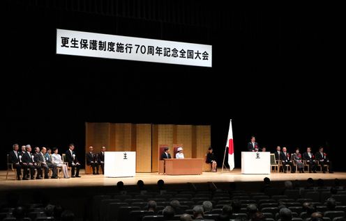 在天皇陛下的莅临之下,安倍总理出席了在东京都内举行的更生保护制度施行70周年纪念全国大会。