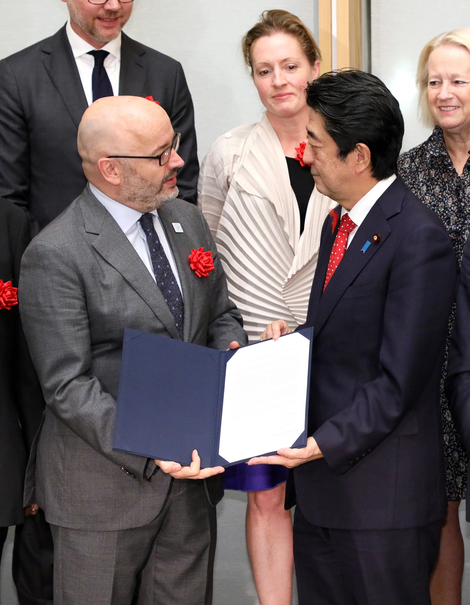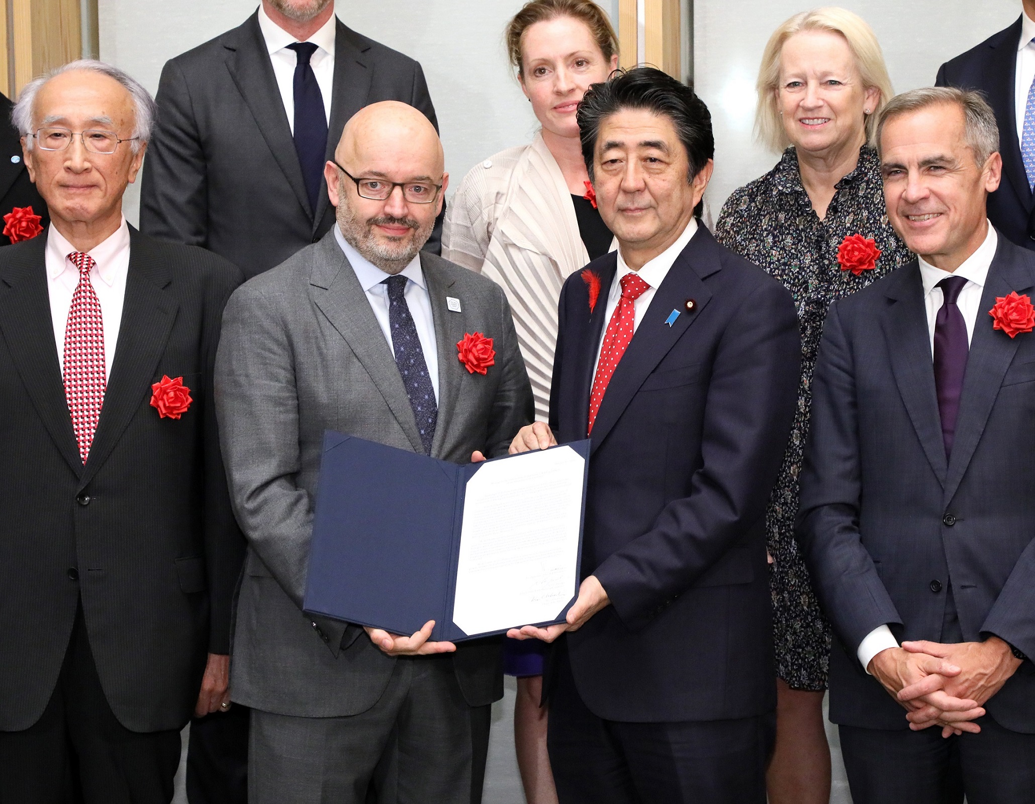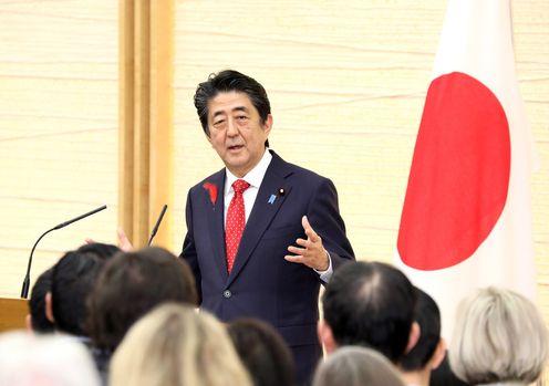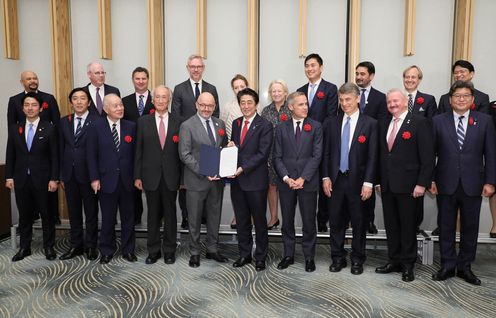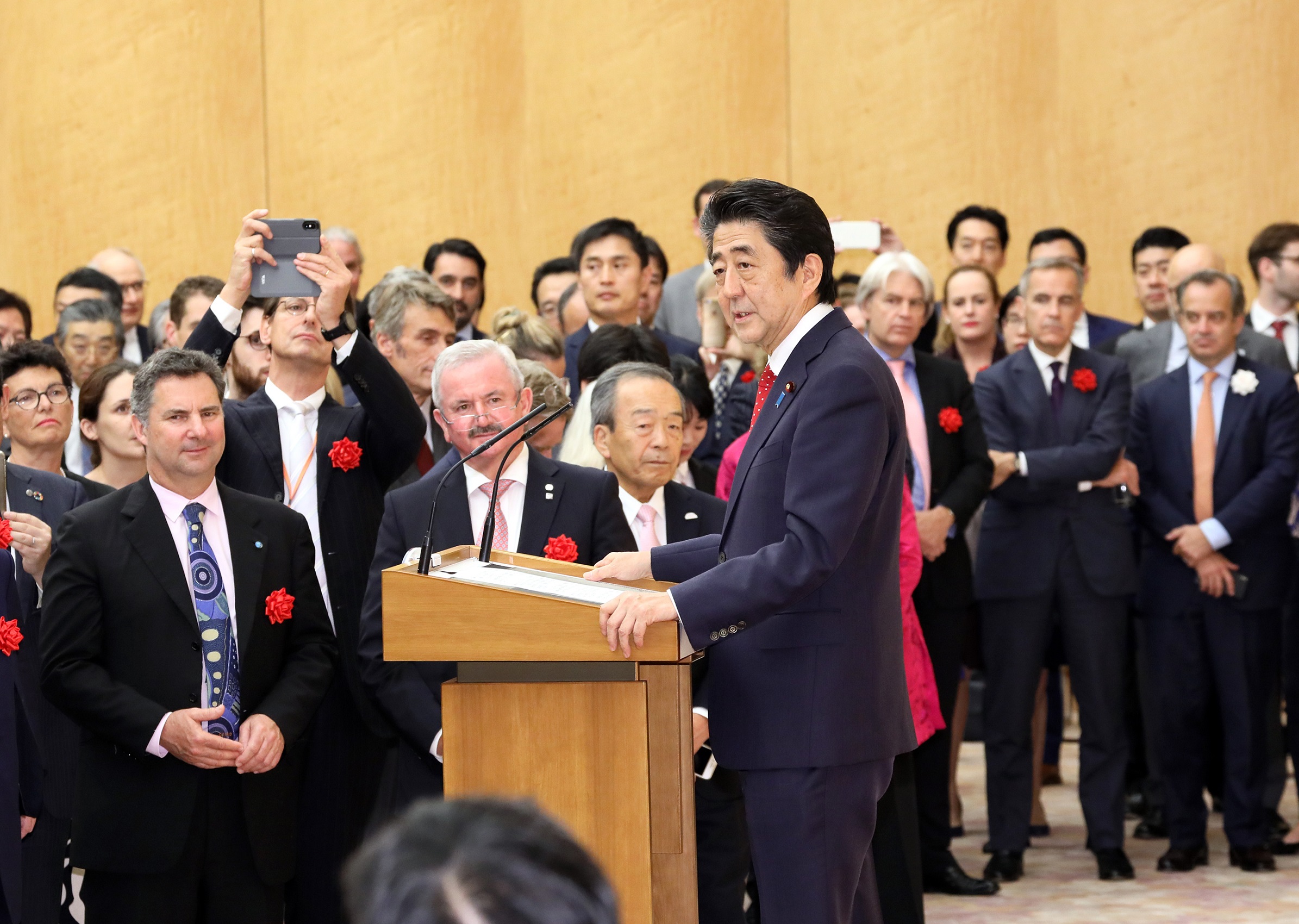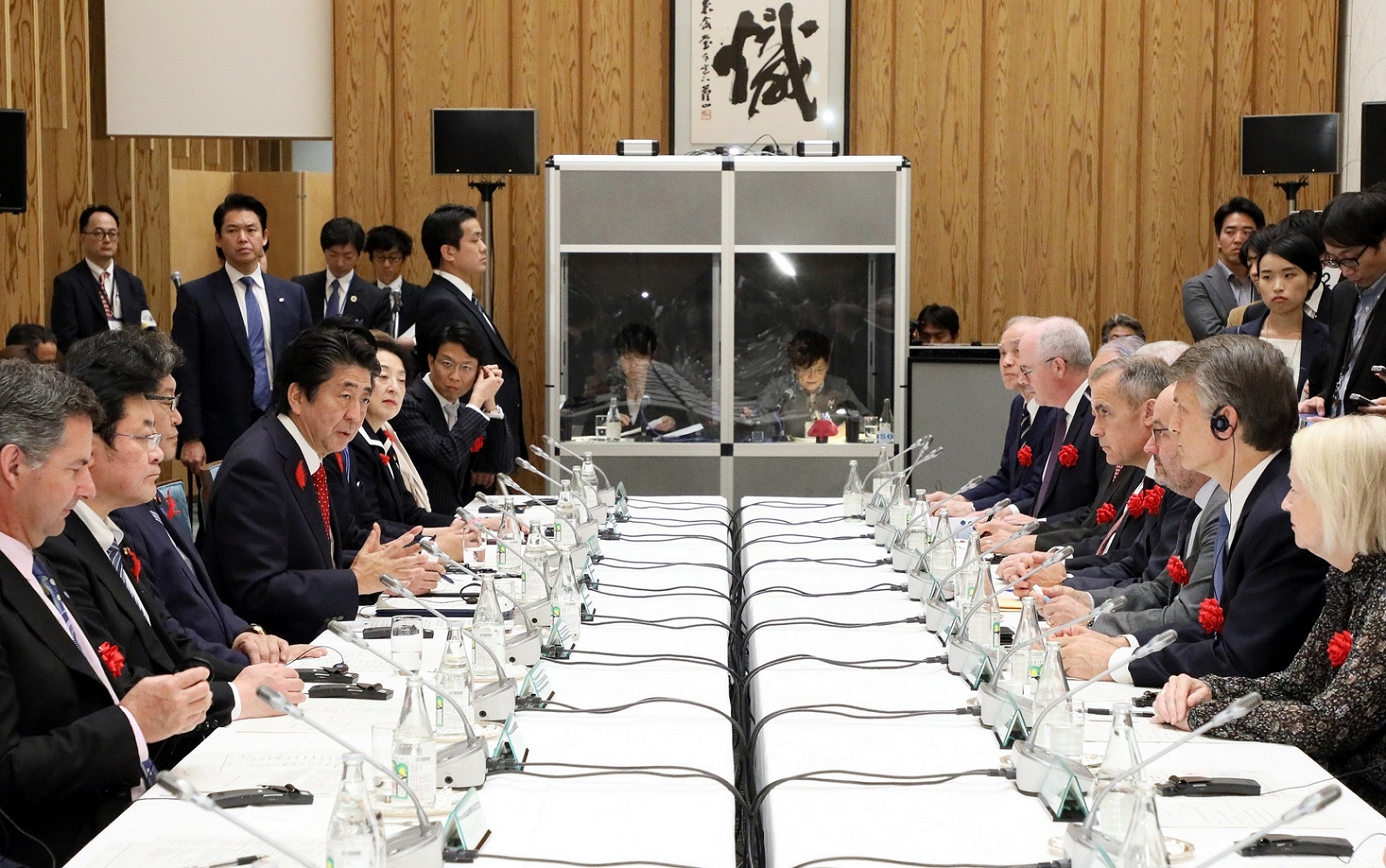 安倍总理在总理大臣官邸出席了绿色创新峰会。