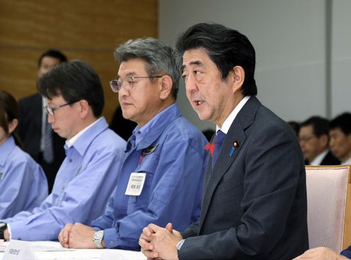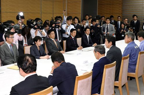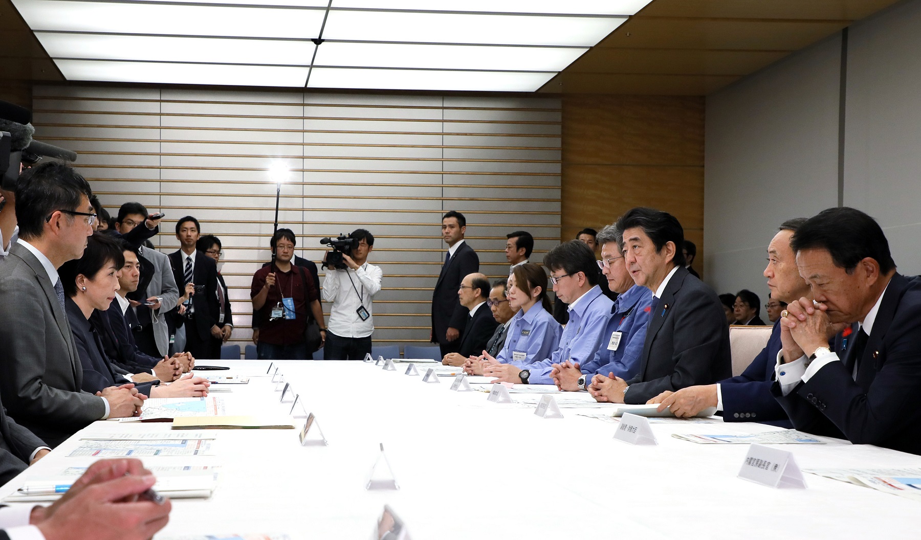 安倍总理在总理大臣官邸出席了2019年第19号台风严重灾害对策本部会议(第3次)。