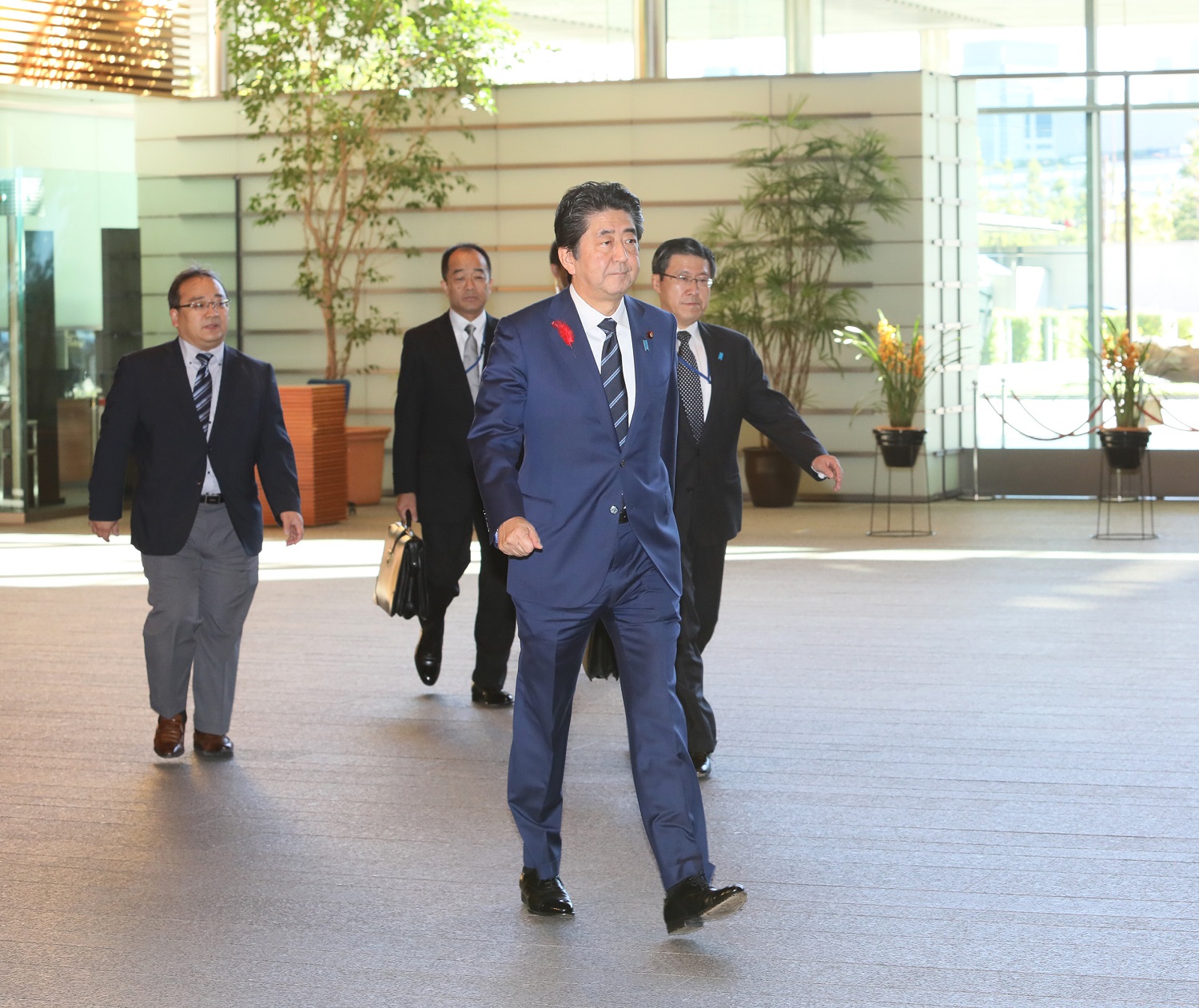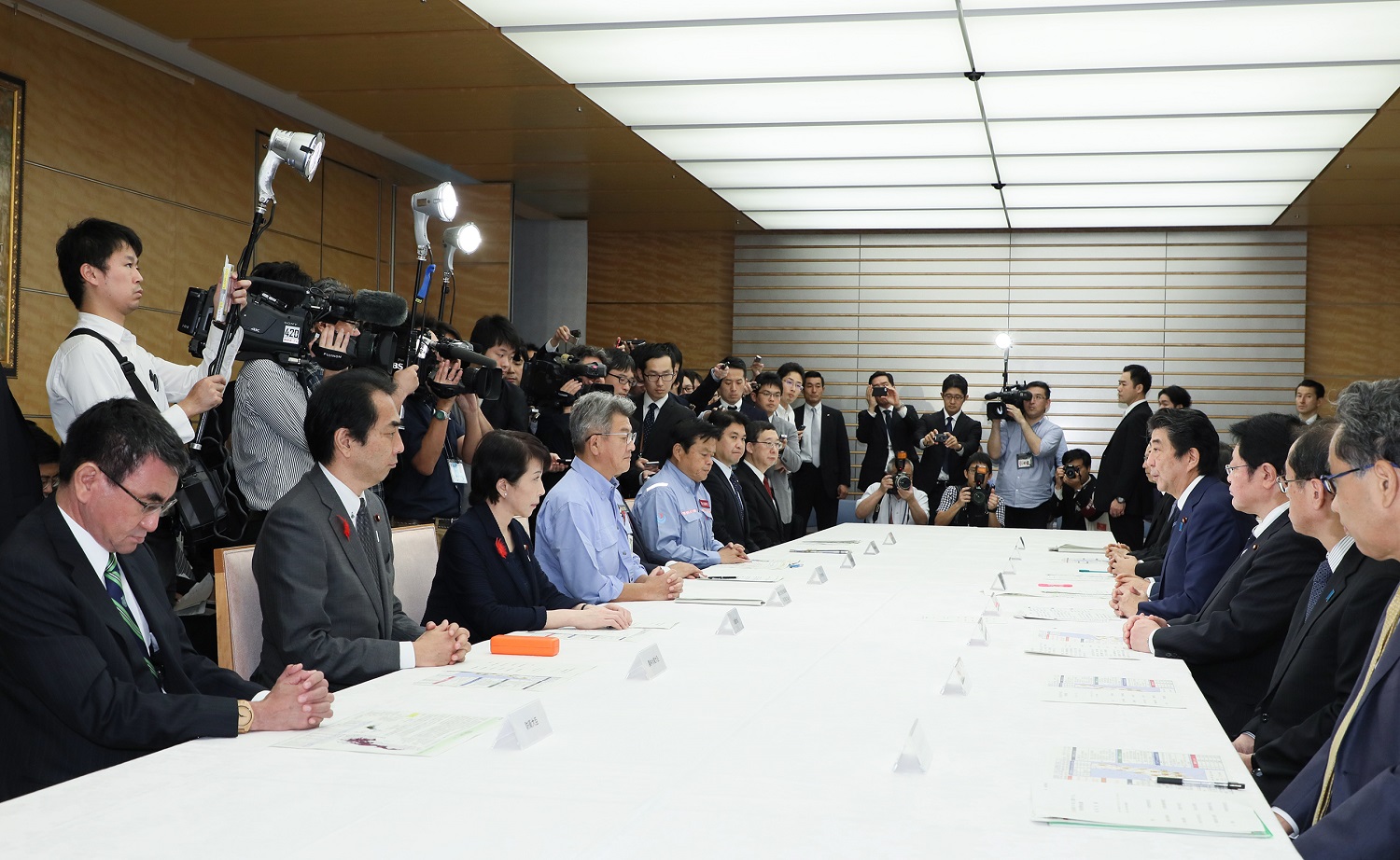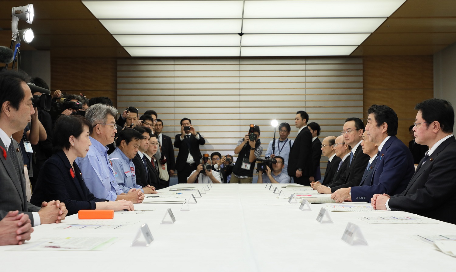 安倍总理在总理大臣官邸召开了第2次有关第19号台风的相关阁僚会议。