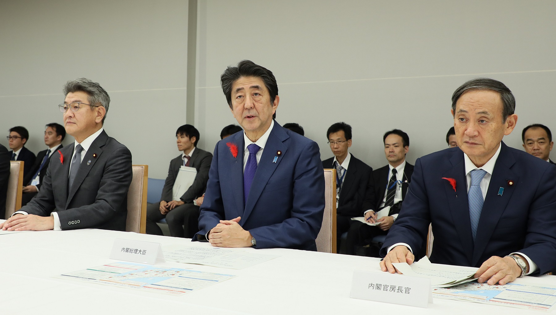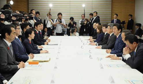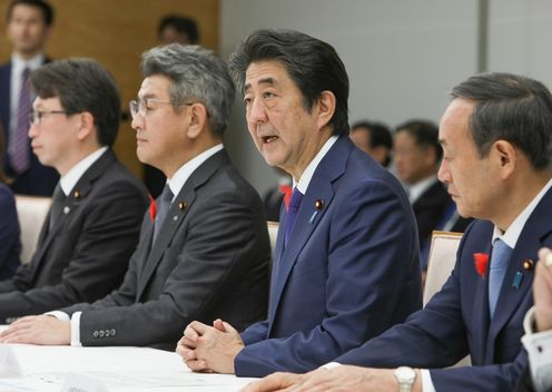 安倍总理在总理大臣官邸出席了2019年第19号台风严重灾害对策本部会议(第5次)。