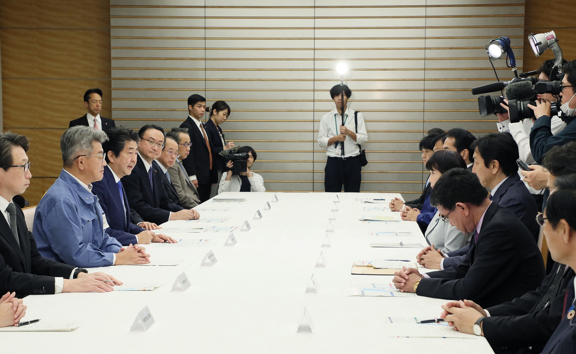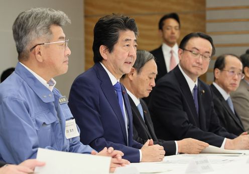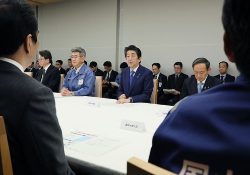 安倍总理在总理大臣官邸出席了2019年第19号台风严重灾害对策本部会议(第9次)。