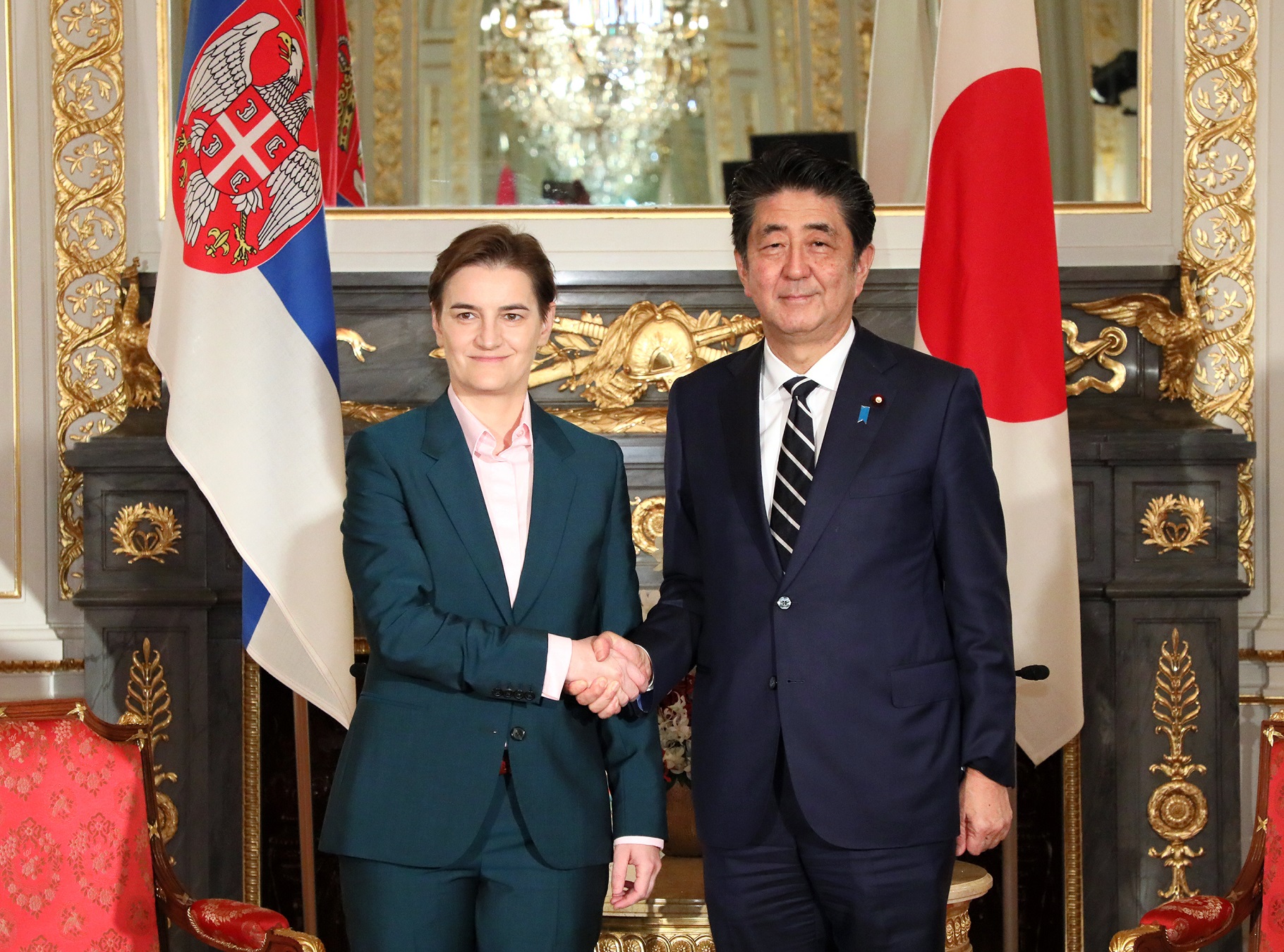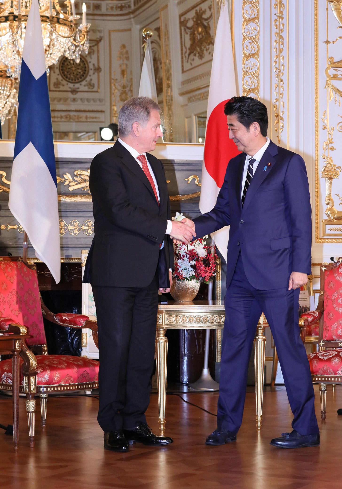 2019年10月21日,安倍总理在迎宾馆赤坂离宫举行了双边会谈等。 下午,总理分别与芬兰共和国总统绍利・尼尼斯托、罗马尼亚总统克劳斯・约翰尼斯、立陶宛共和国总统吉塔纳斯・瑙塞达、乌克兰总统弗拉基米尔・泽连斯基、塞尔维亚共和国总理阿娜・布尔纳比奇、莱索托王国国王莱齐耶三世陛下、密克罗尼西亚联邦总统戴维・帕努埃洛举行了会谈。