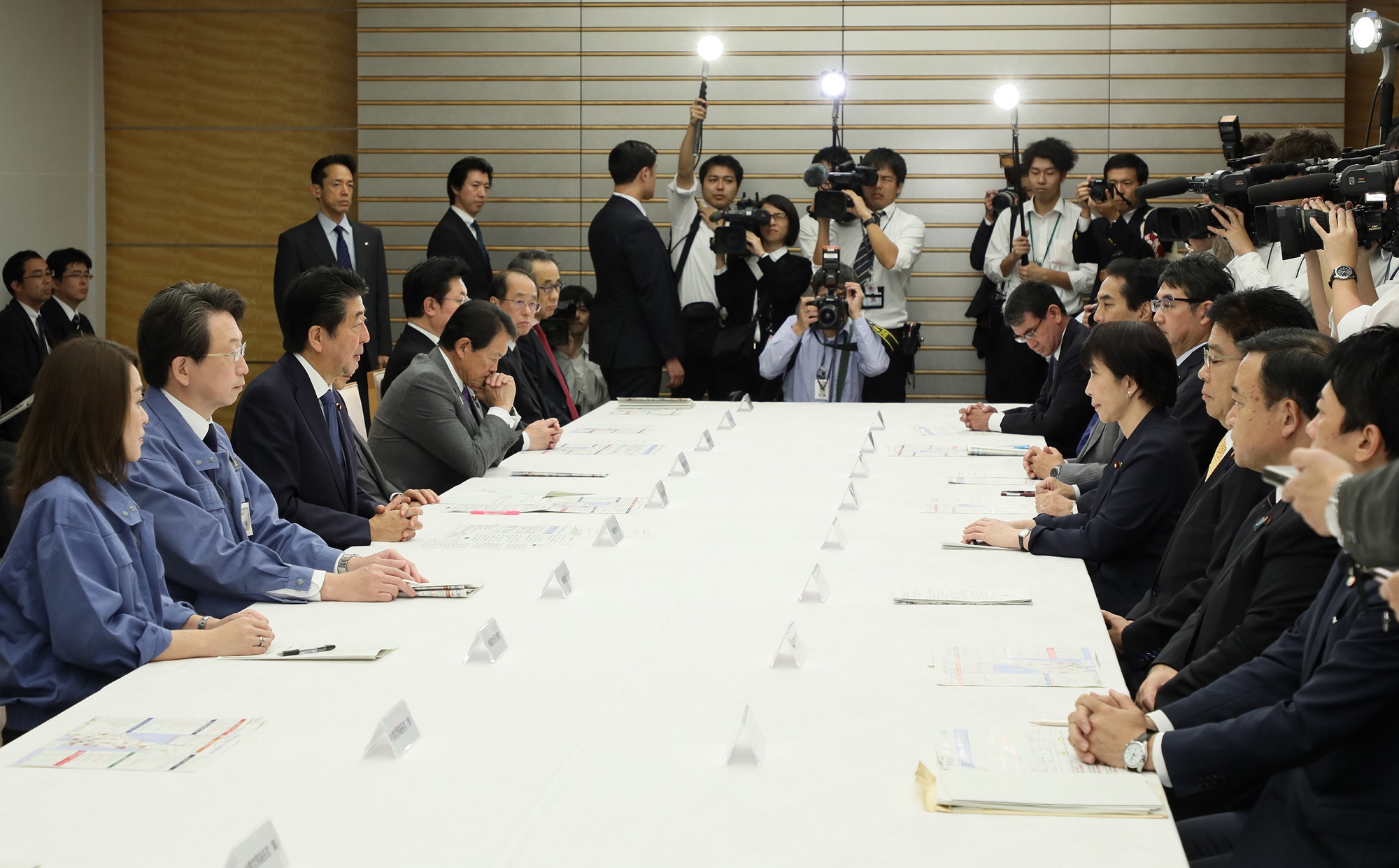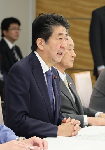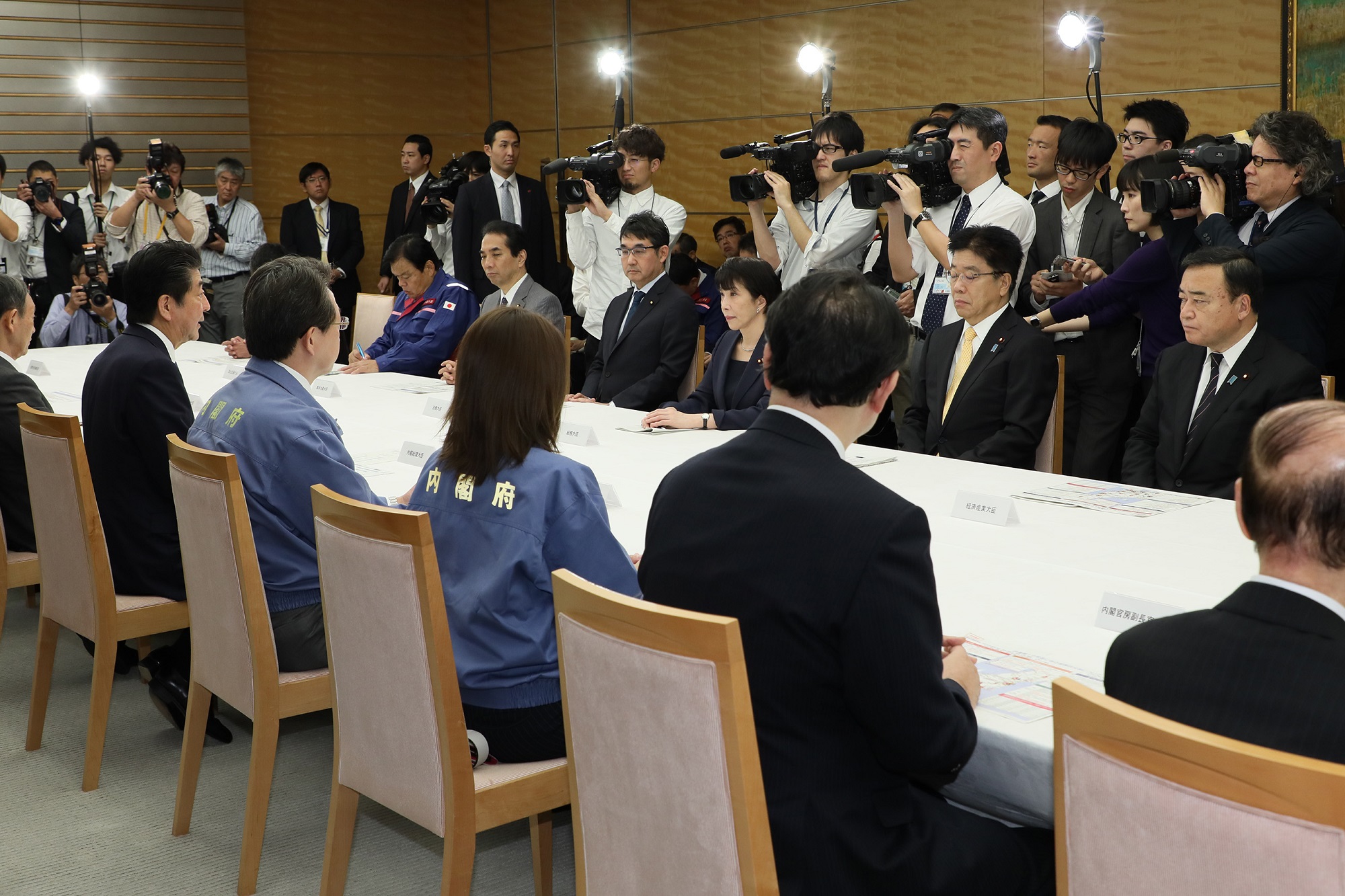 安倍总理在总理大臣官邸出席了2019年第19号台风严重灾害对策本部会议(第14次)。