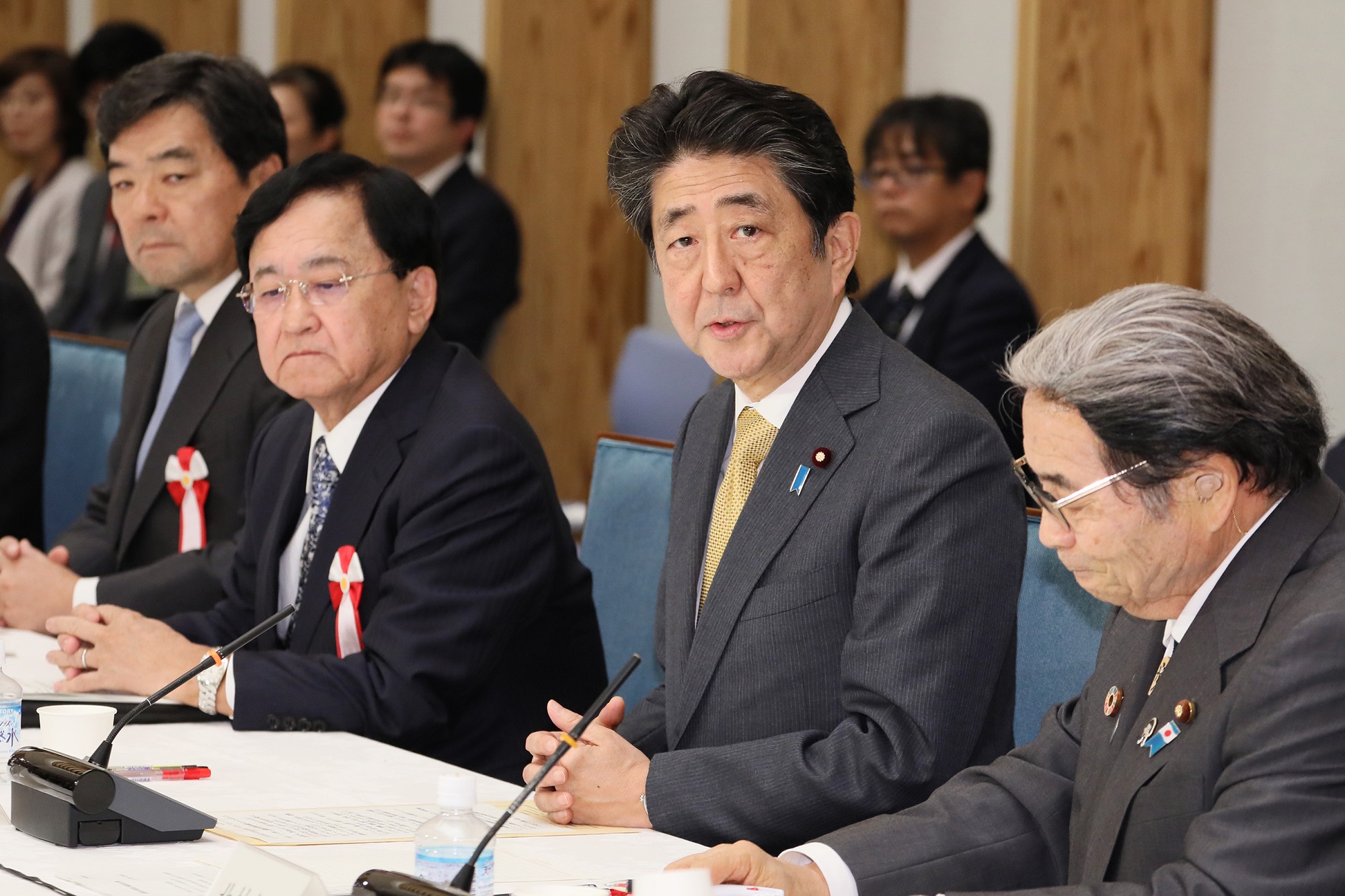 安倍总理在总理大臣官邸出席了第1次规制改革推进会议。