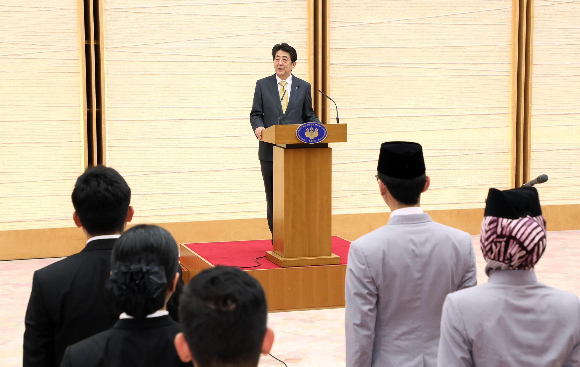 安倍总理在总理大臣官邸接受了参加“东南亚青年之船”青年代表等的拜会。
