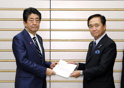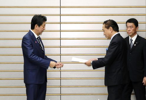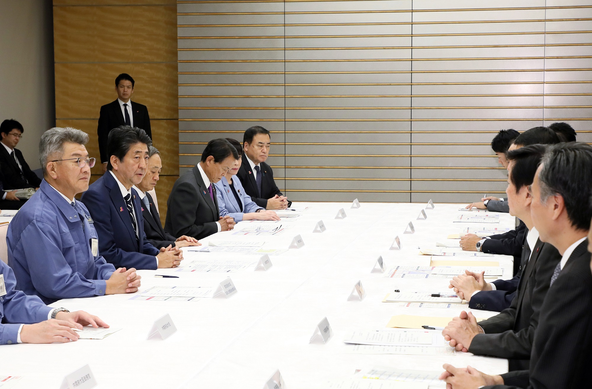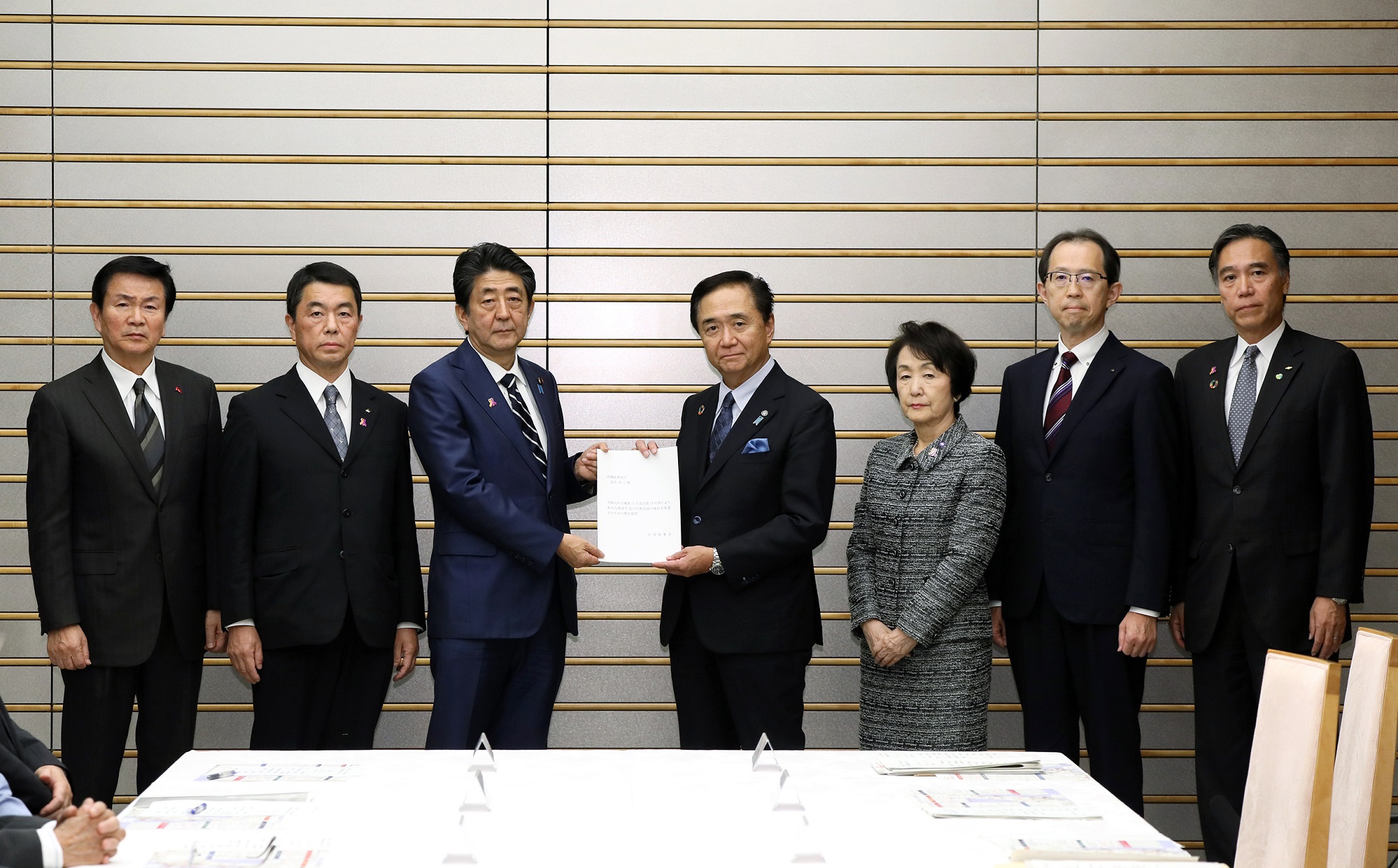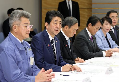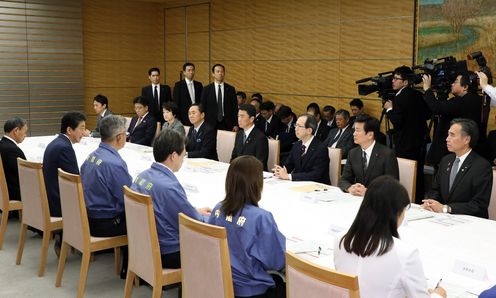 安倍总理在总理大臣官邸出席了2019年第19号台风严重灾害对策本部会议(第16次)。