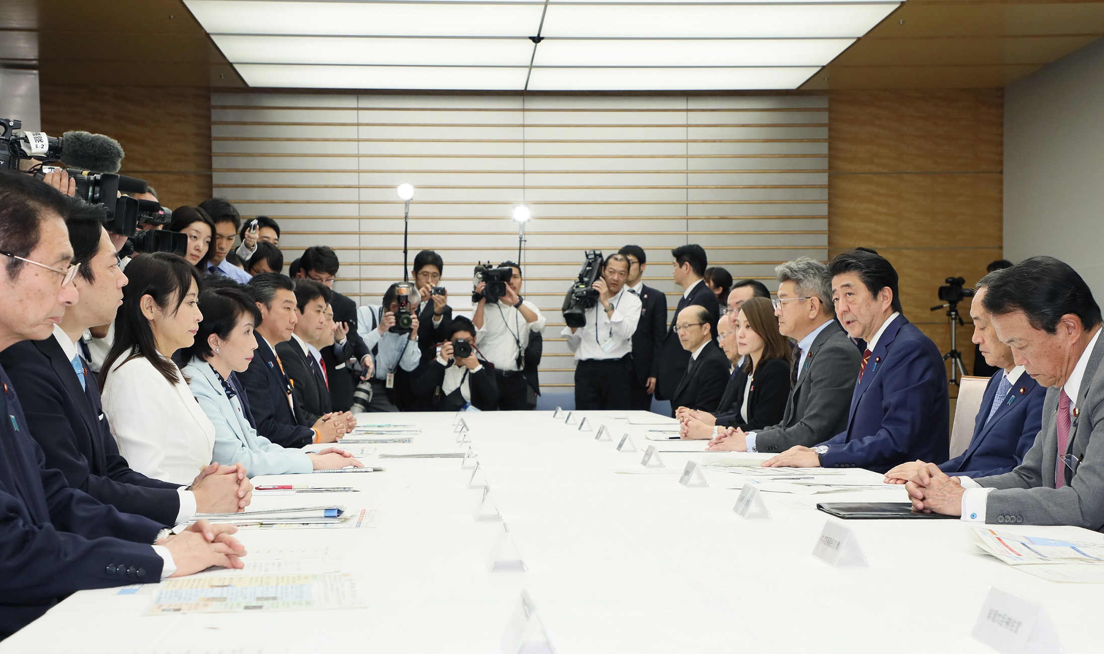 安倍总理在总理大臣官邸出席了2019年第19号台风严重灾害对策本部会议(第18次)。