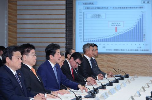 安倍总理在总理大臣官邸进行了新型流感等对策综合训练。