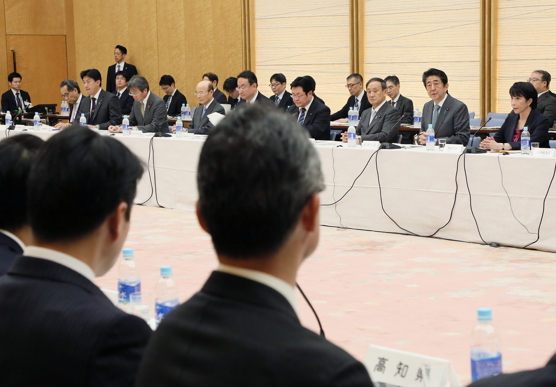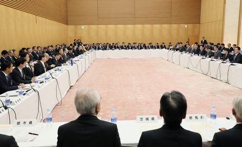 安倍总理在总理大臣官邸出席了全国都道府县知事会议。