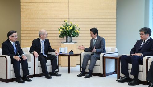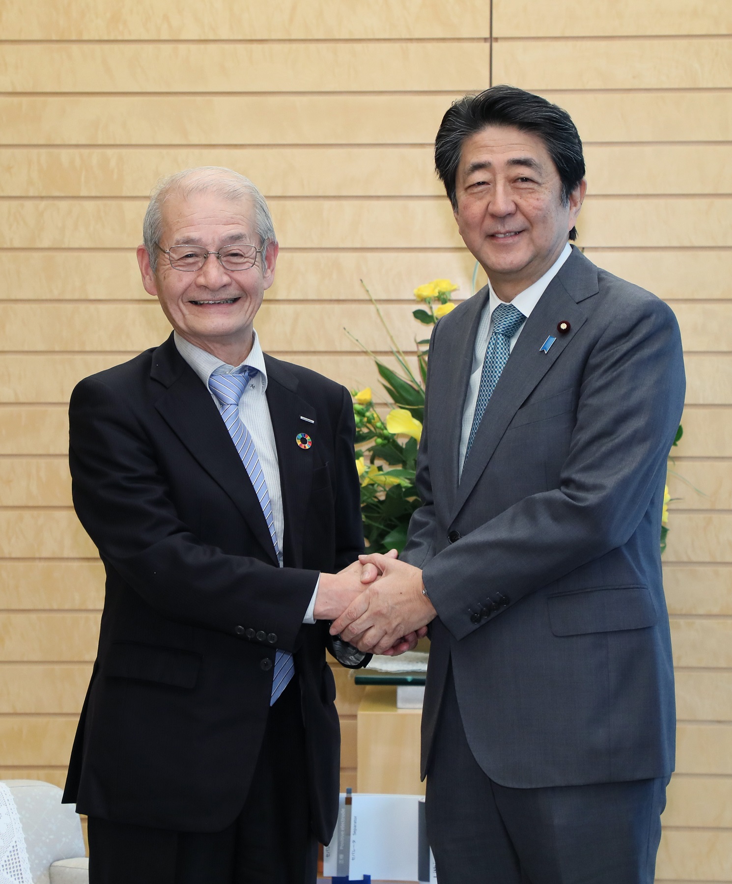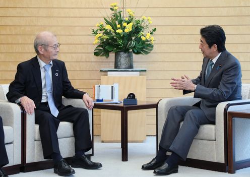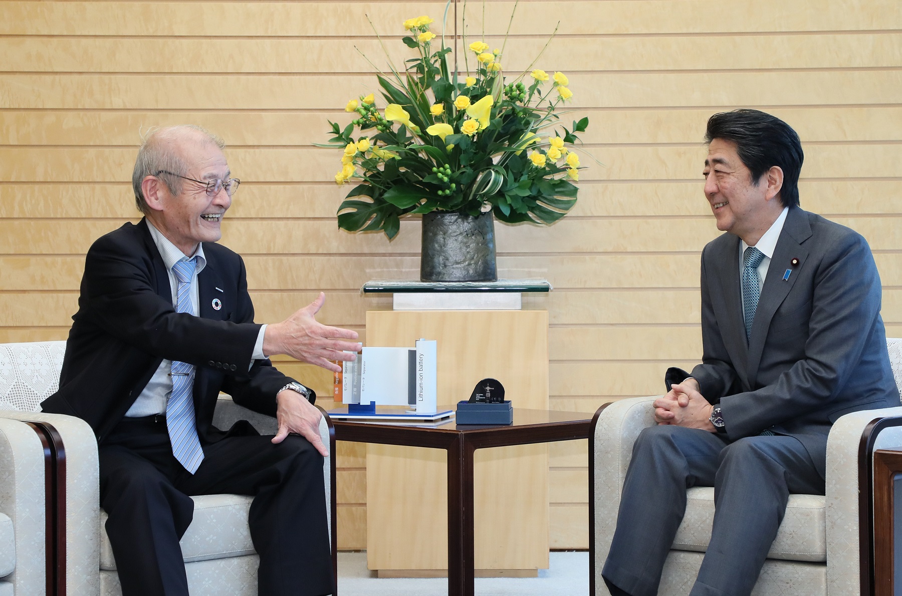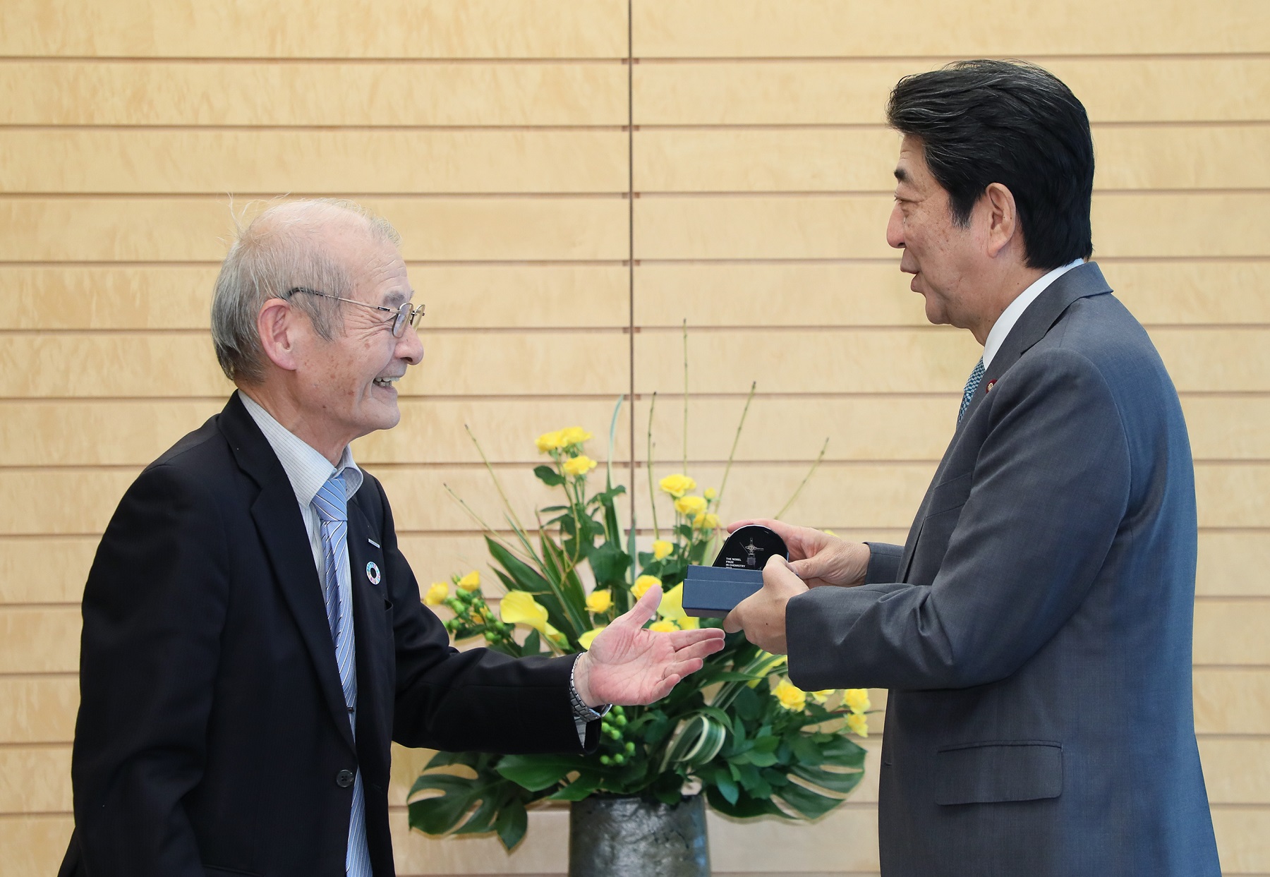 安倍总理在总理大臣官邸接受了旭化成株式会社名誉研究员吉野彰的拜访。