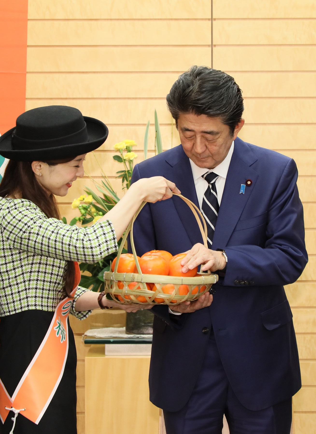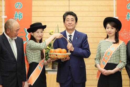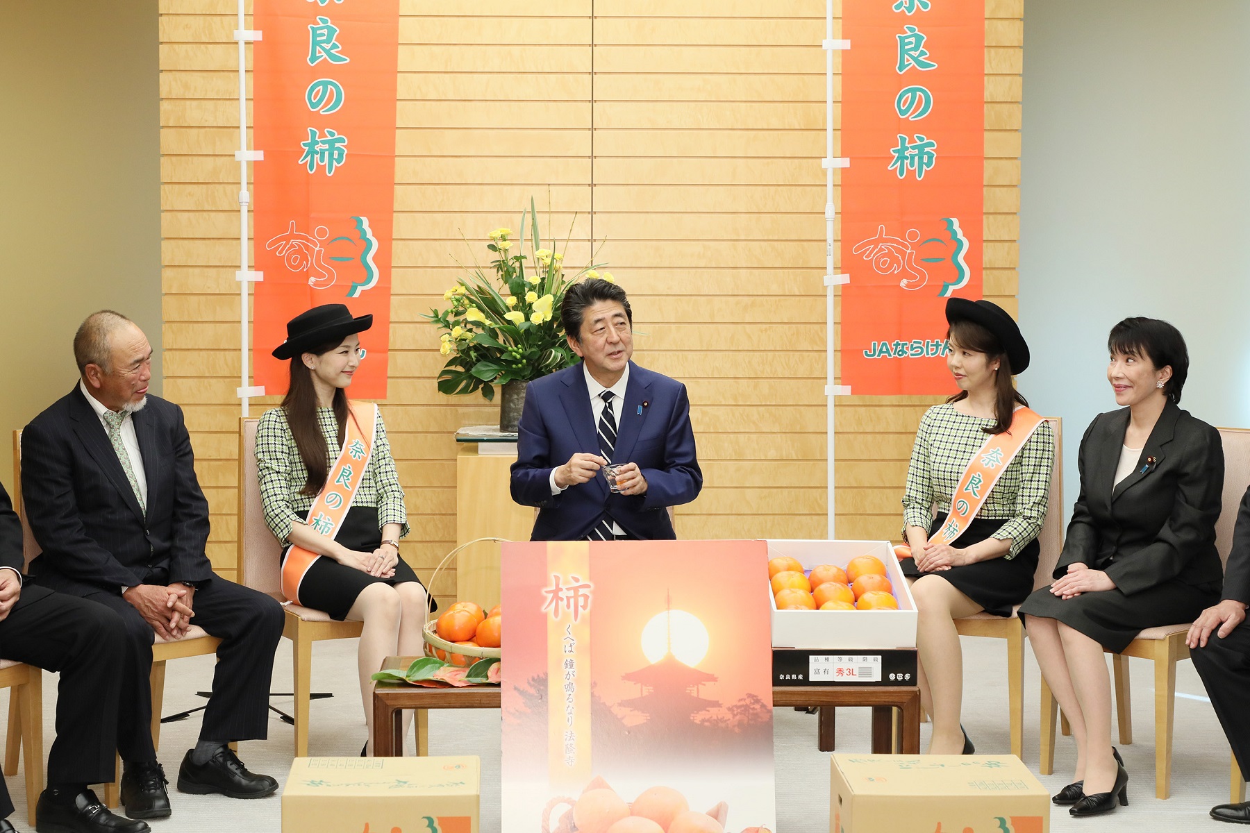 安倍总理在总理大臣官邸接受了“奈良柿子”宣传女士等的拜访。