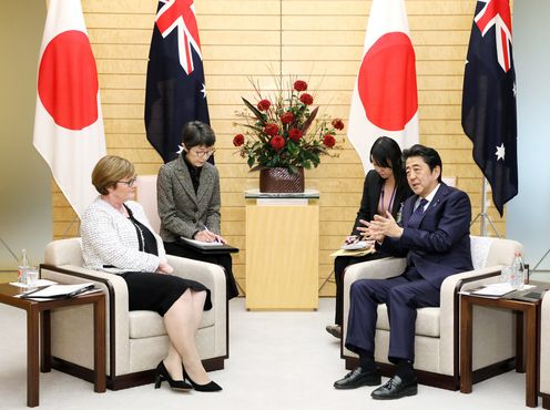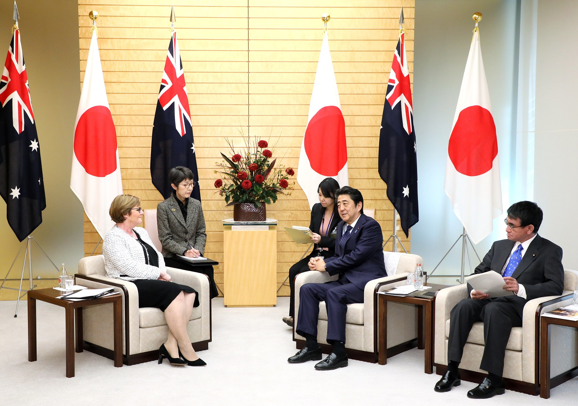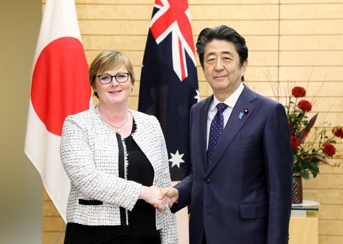 安倍总理在总理大臣官邸接受了澳大利亚联邦国防部长琳达・雷诺兹的拜会。