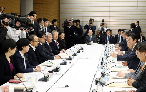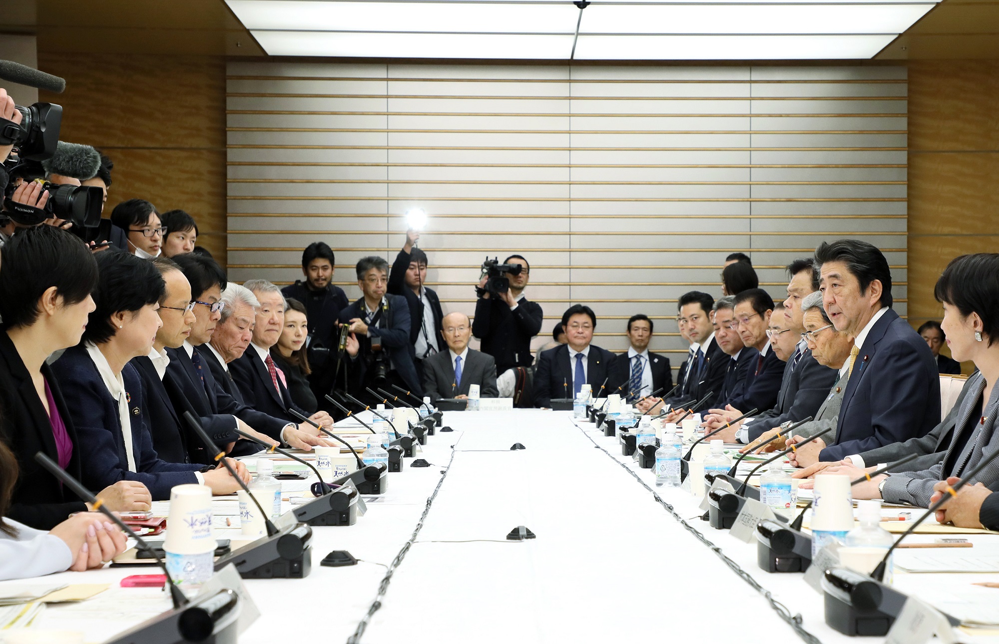 安倍总理在总理大臣官邸召开了第20次城镇・居民・工作创生会议。