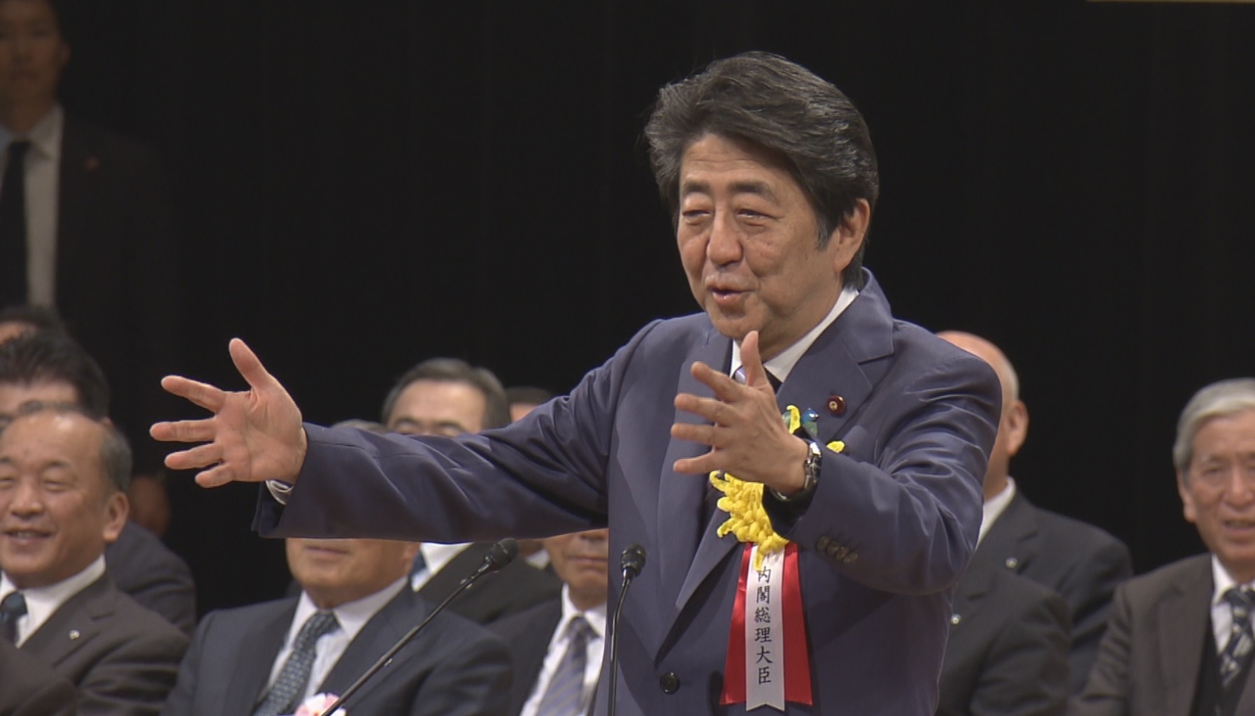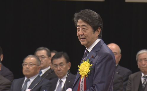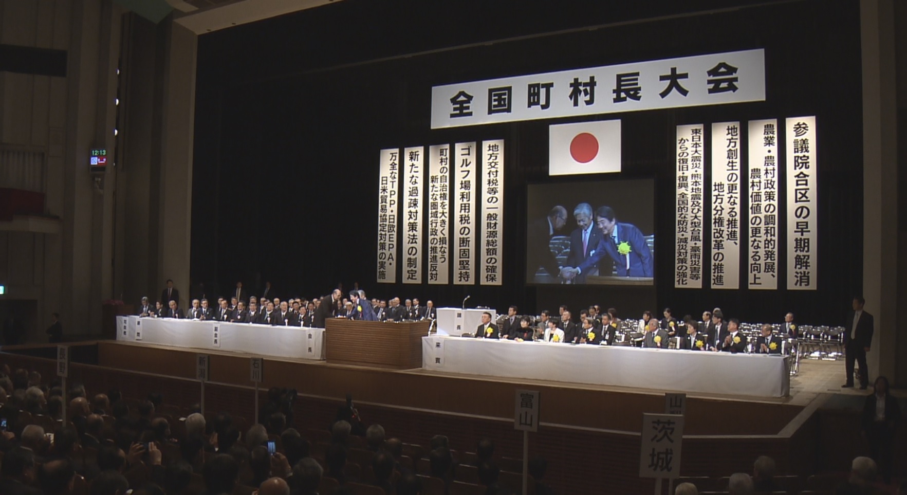 安倍总理出席了在东京都内举行的全国町村长大会。