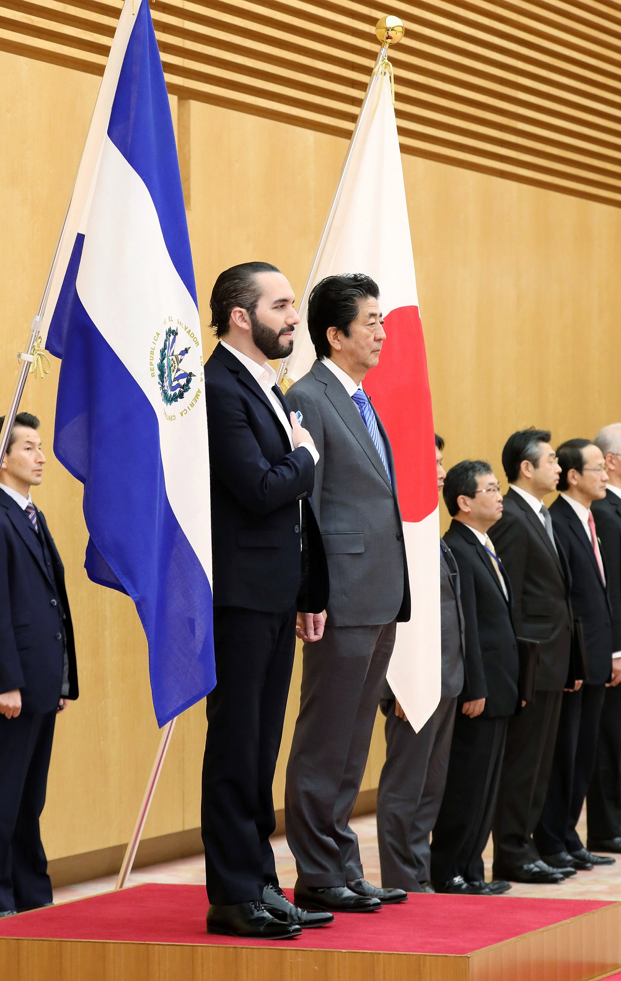 安倍总理在总理大臣官邸与萨尔瓦多共和国总统纳伊布・阿曼多・布克尔・奥尔特斯举行了首脑会谈等。