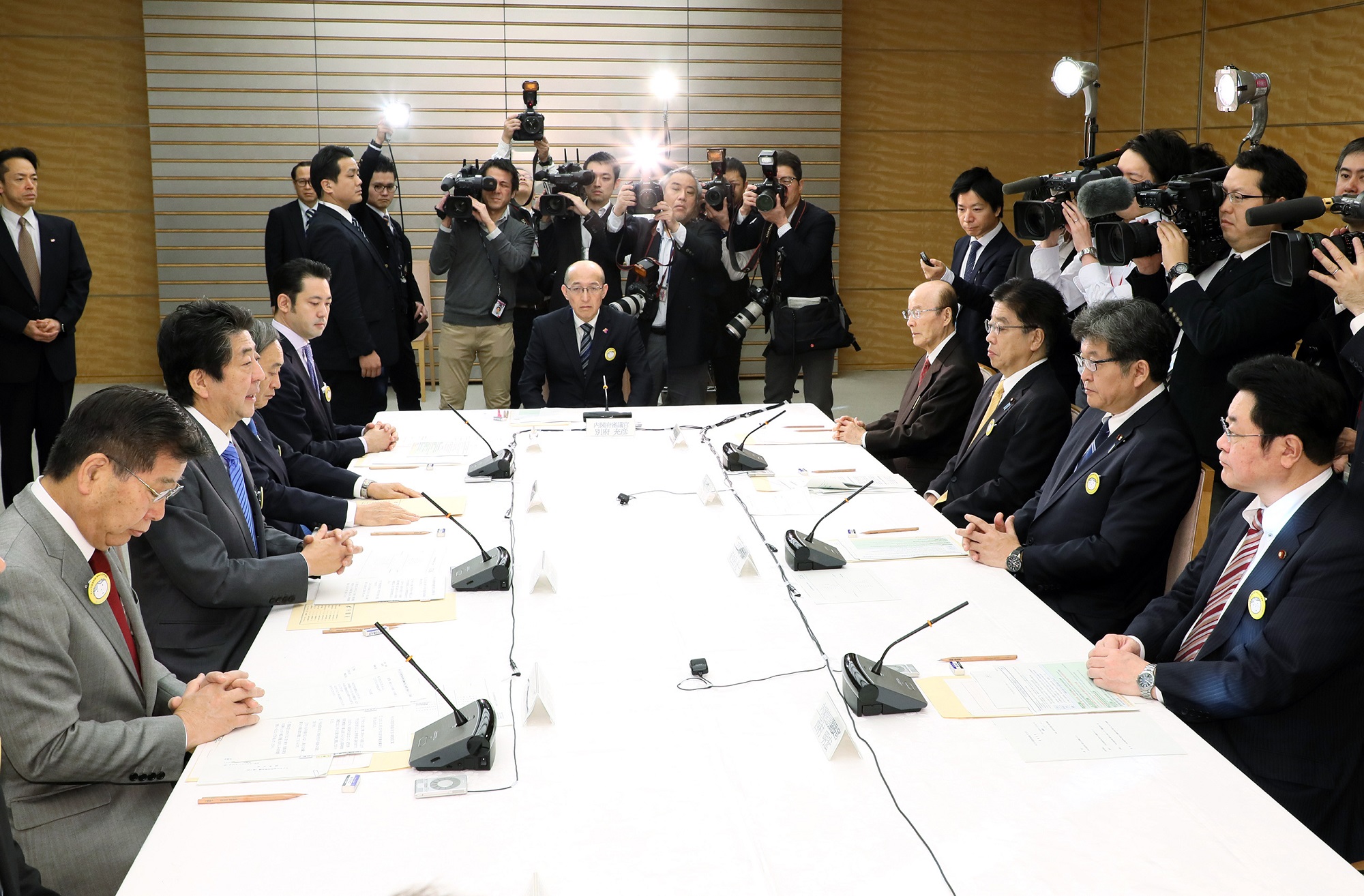 安倍总理在总理大臣官邸召开了第7次儿童贫困对策会议。