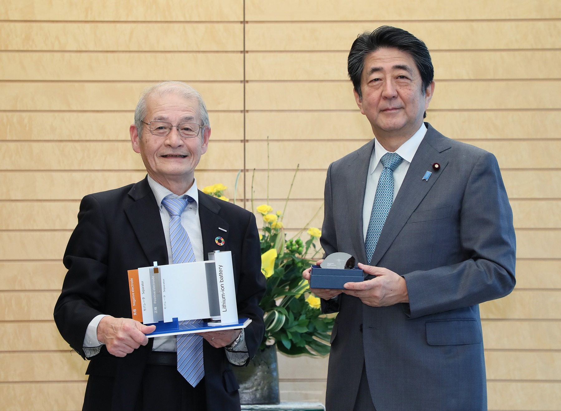 安倍总理在总理大臣官邸接受了旭化成株式会社名誉研究员吉野彰的拜访。