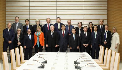 安倍总理在总理大臣官邸接受了日德论坛出席人员一行的拜会。