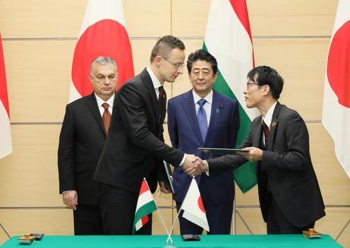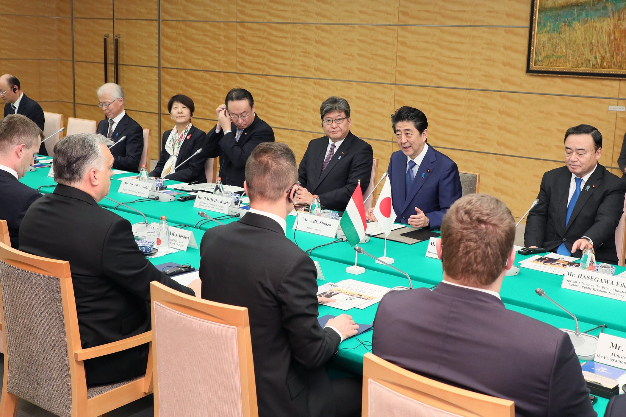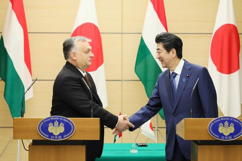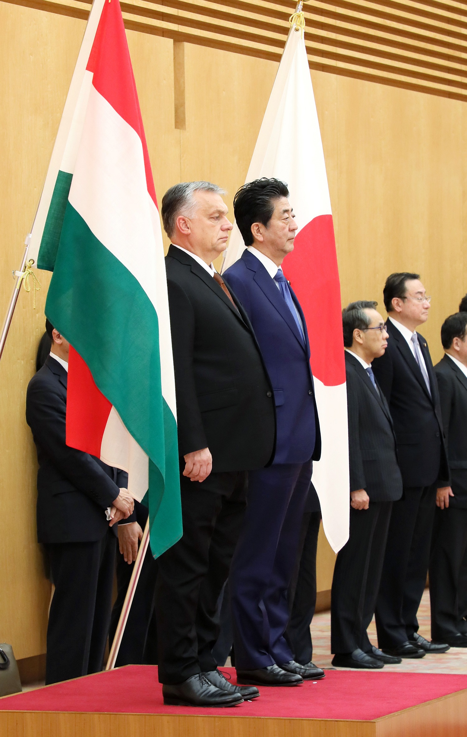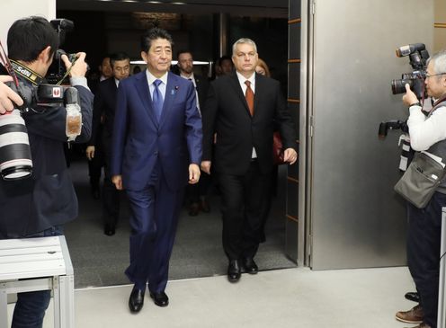 安倍总理在总理大臣官邸与匈牙利总理欧尔班・维克多举行了首脑会谈等。