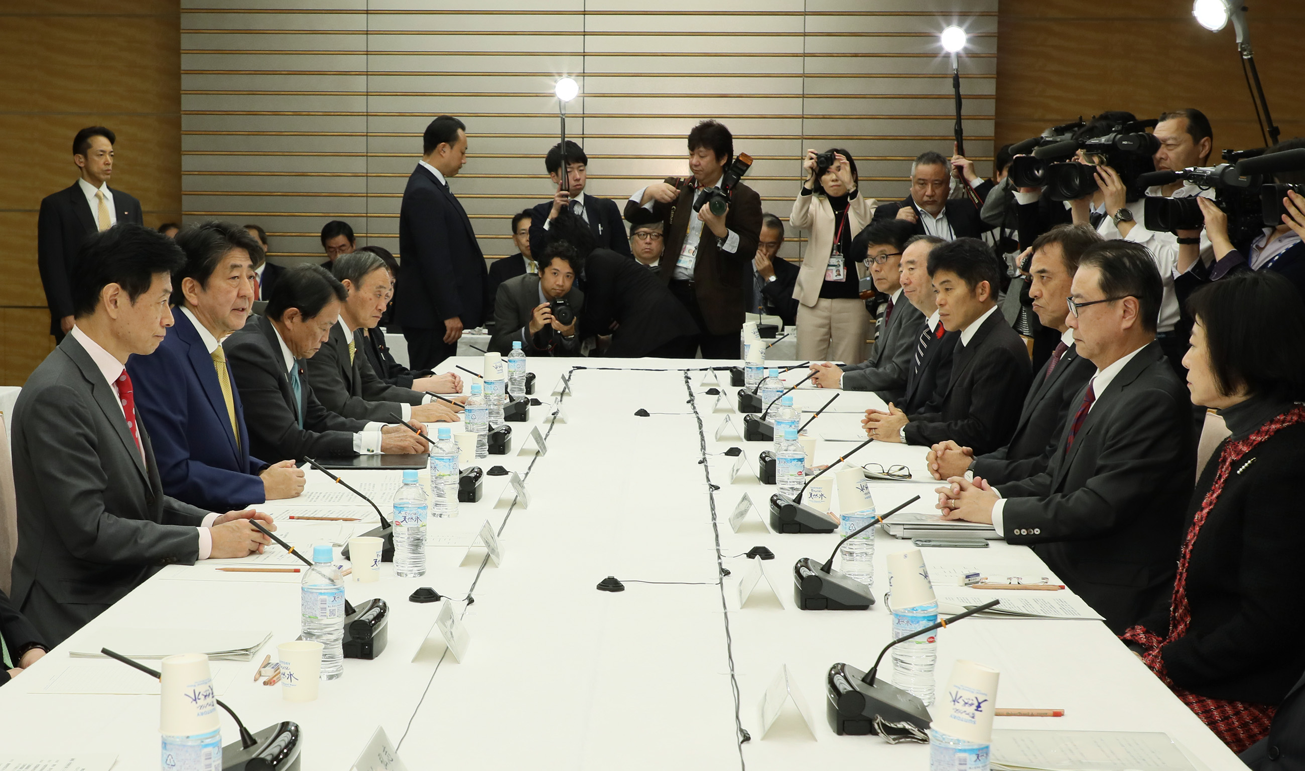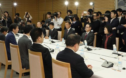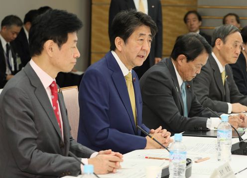 安倍总理在总理大臣官邸召开了第5次全民型社会保障探讨会议。