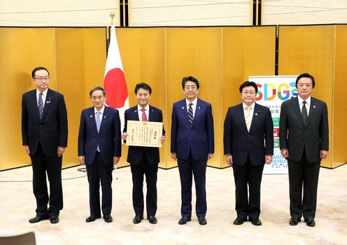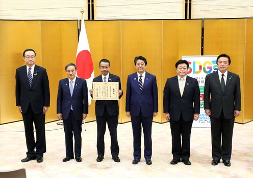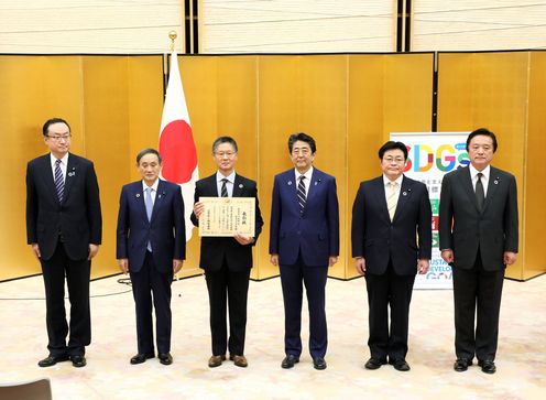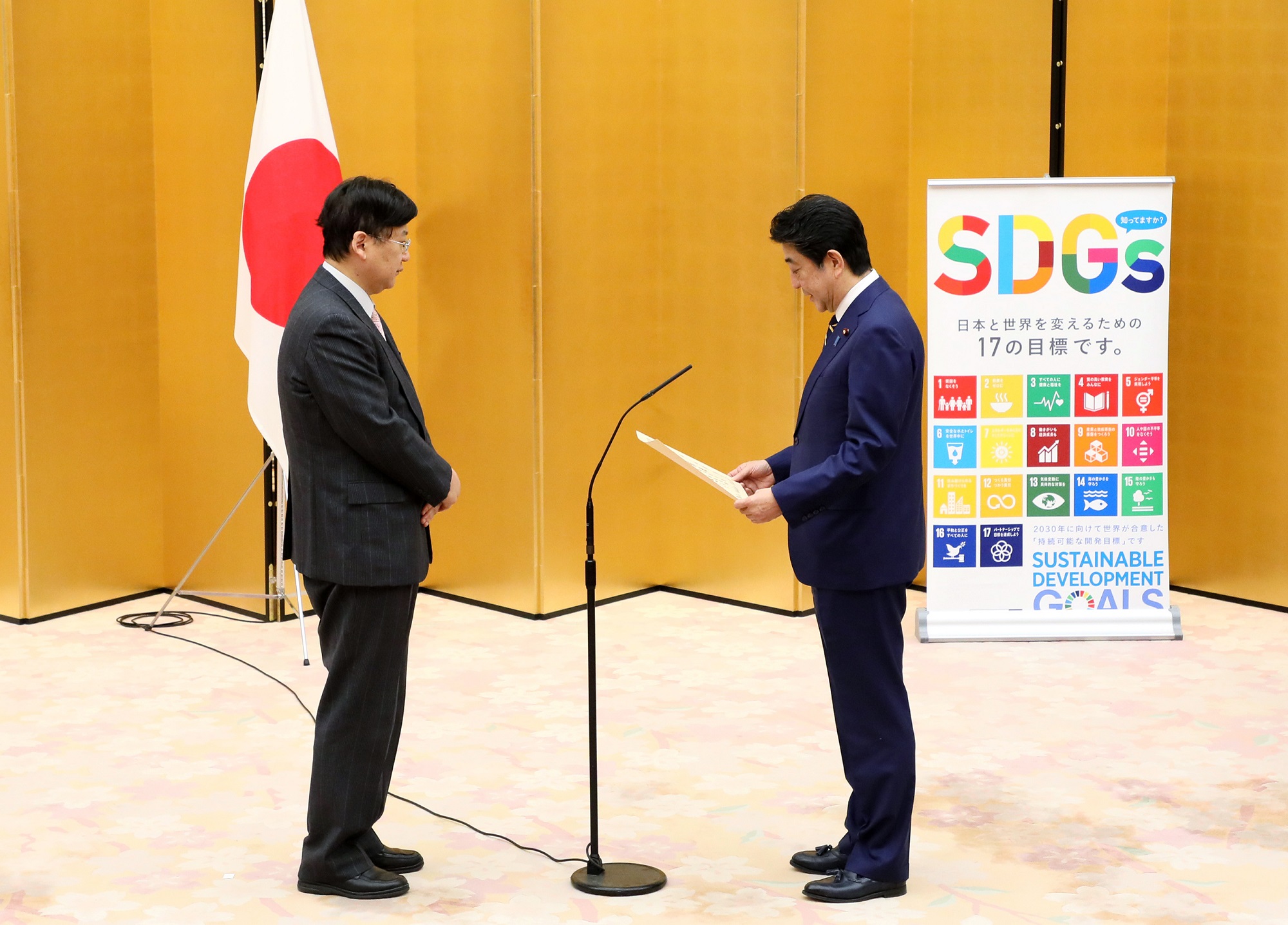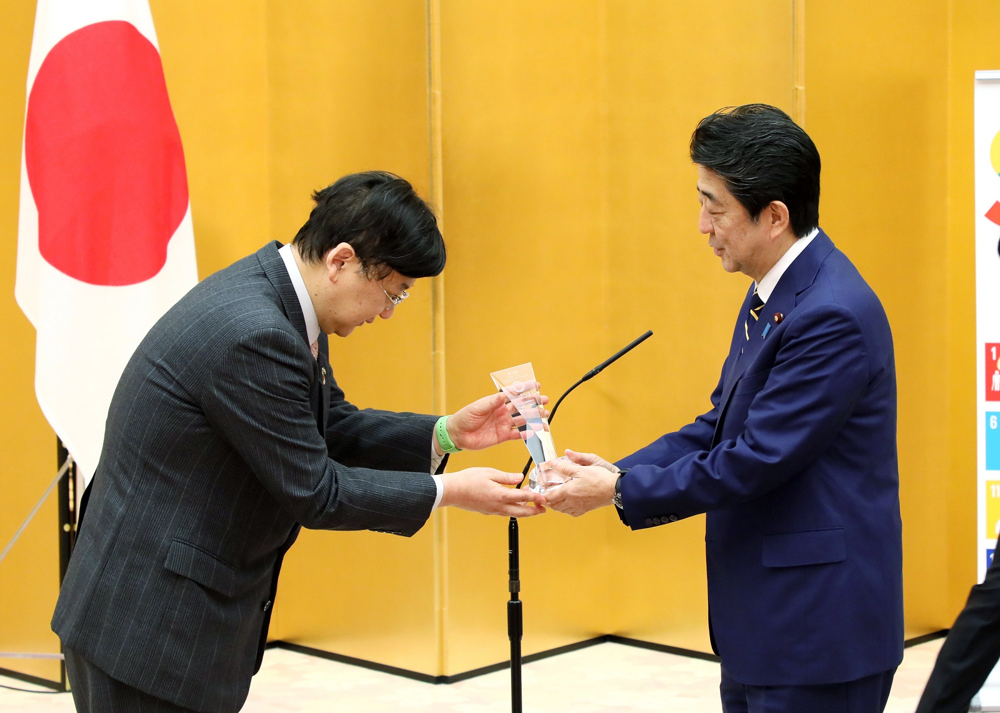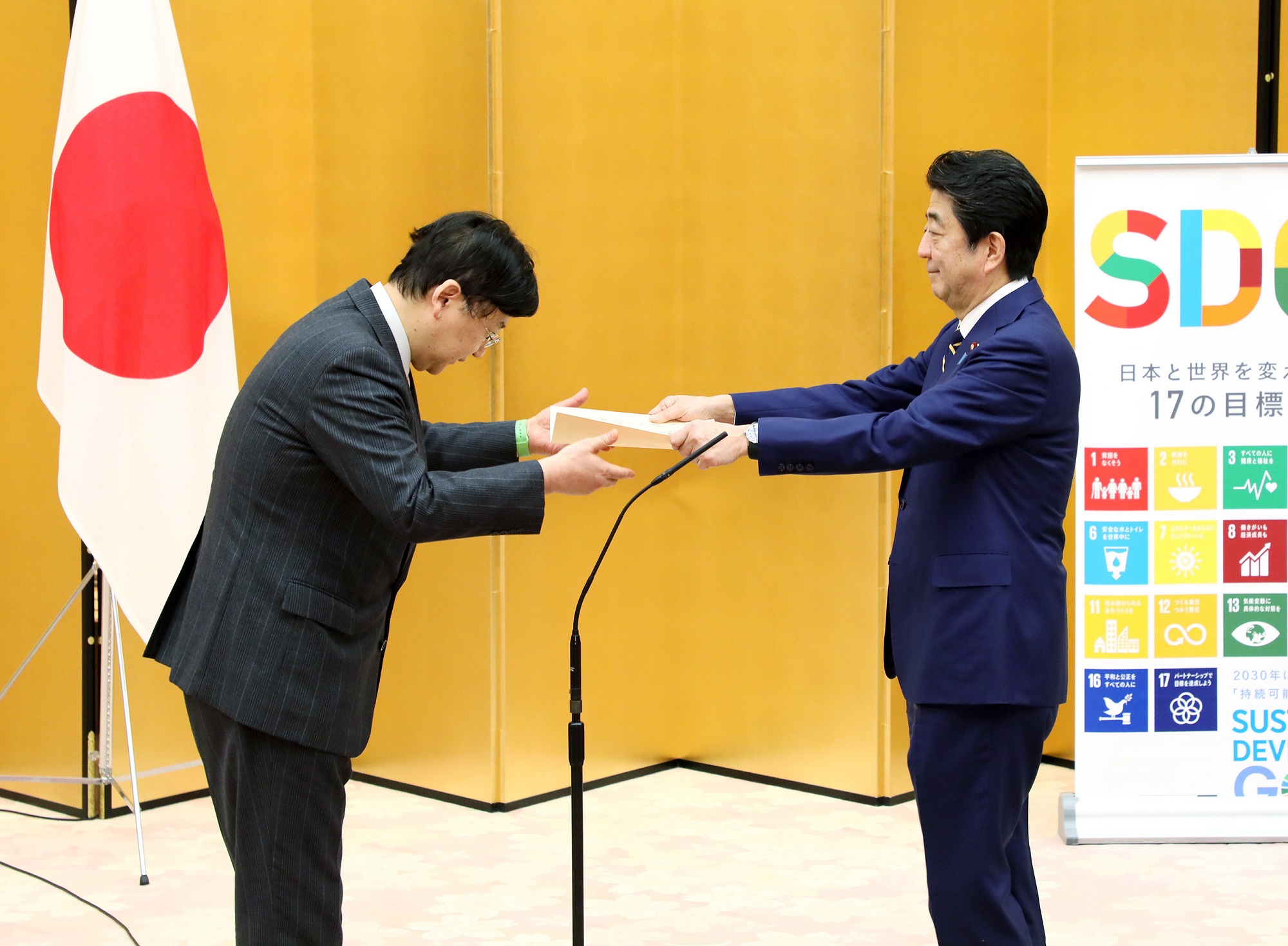 安倍总理在总理大臣官邸召开了第3届日本可持续发展目标(SDGs)奖表彰仪式。