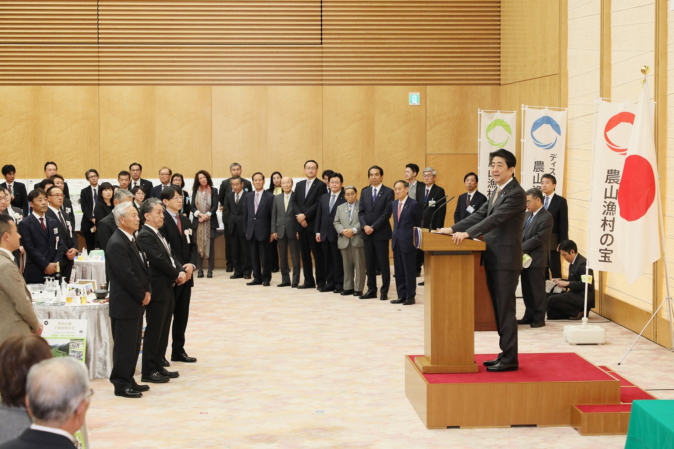 安倍总理在总理大臣官邸出席了“寻找农山渔村至宝”交流会。