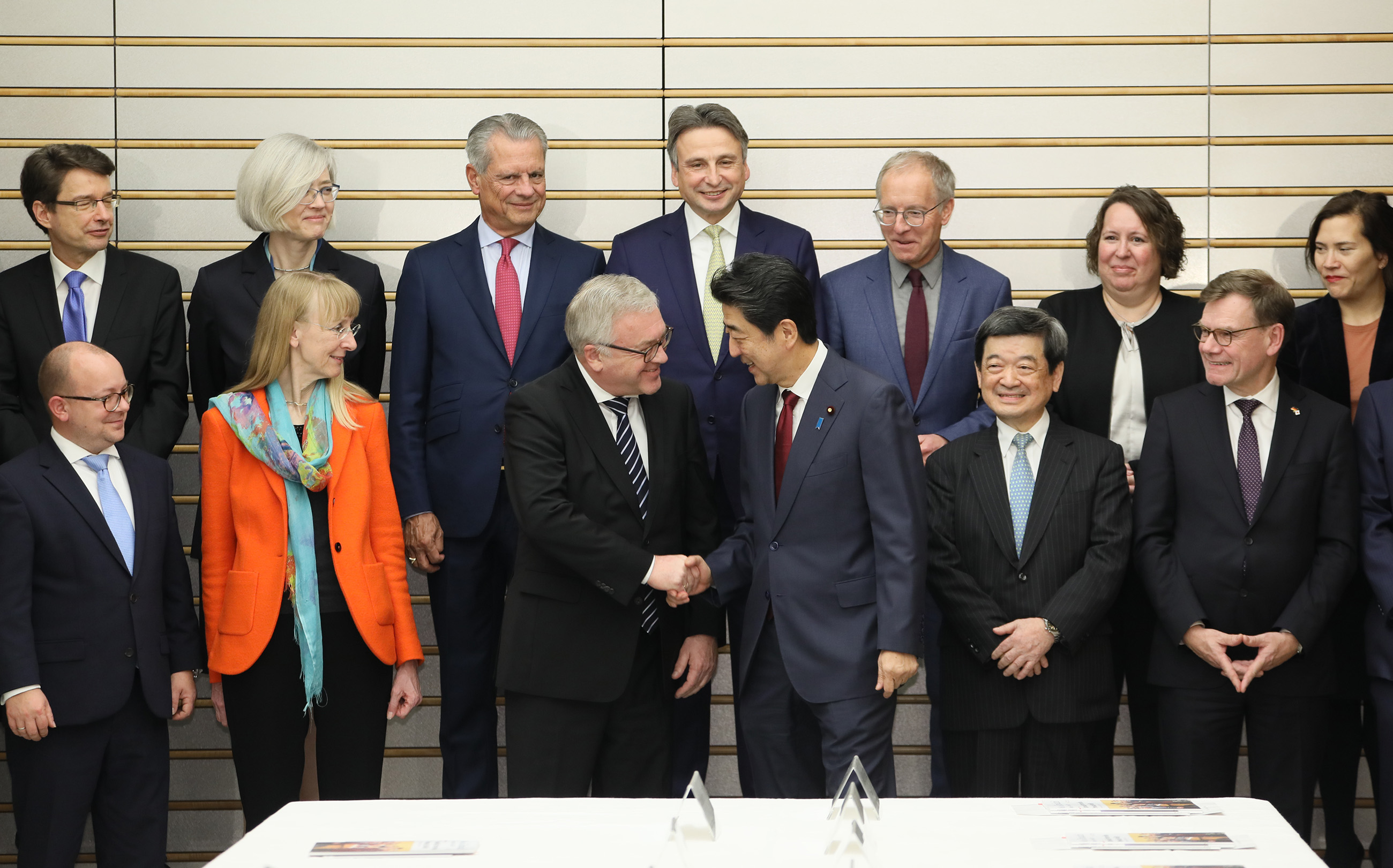 安倍总理在总理大臣官邸接受了日德论坛出席人员一行的拜会。