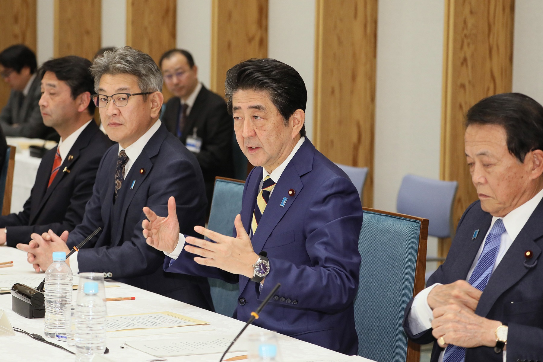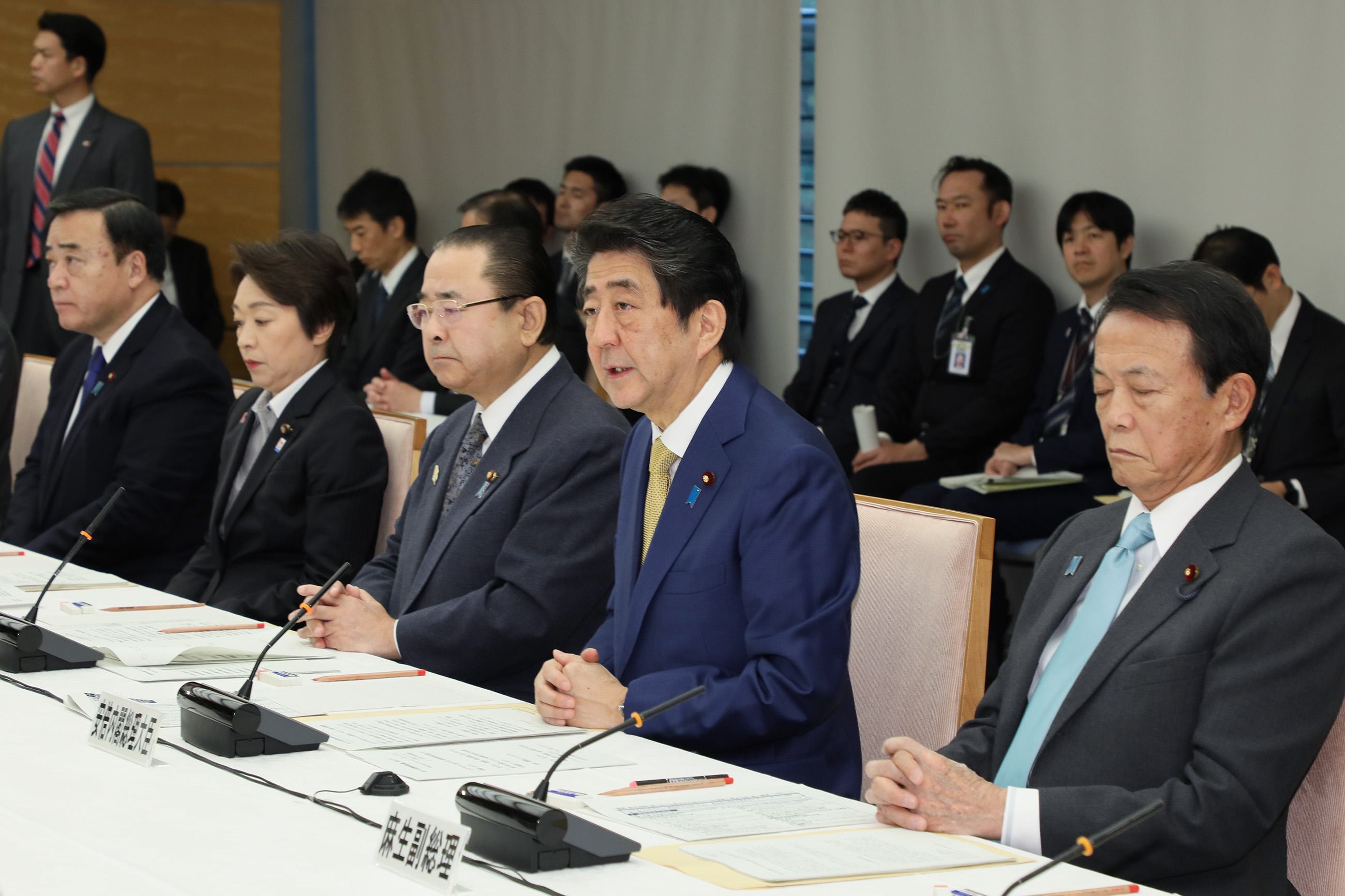 安倍总理在总理大臣官邸召开了第5次全民型社会保障探讨会议。