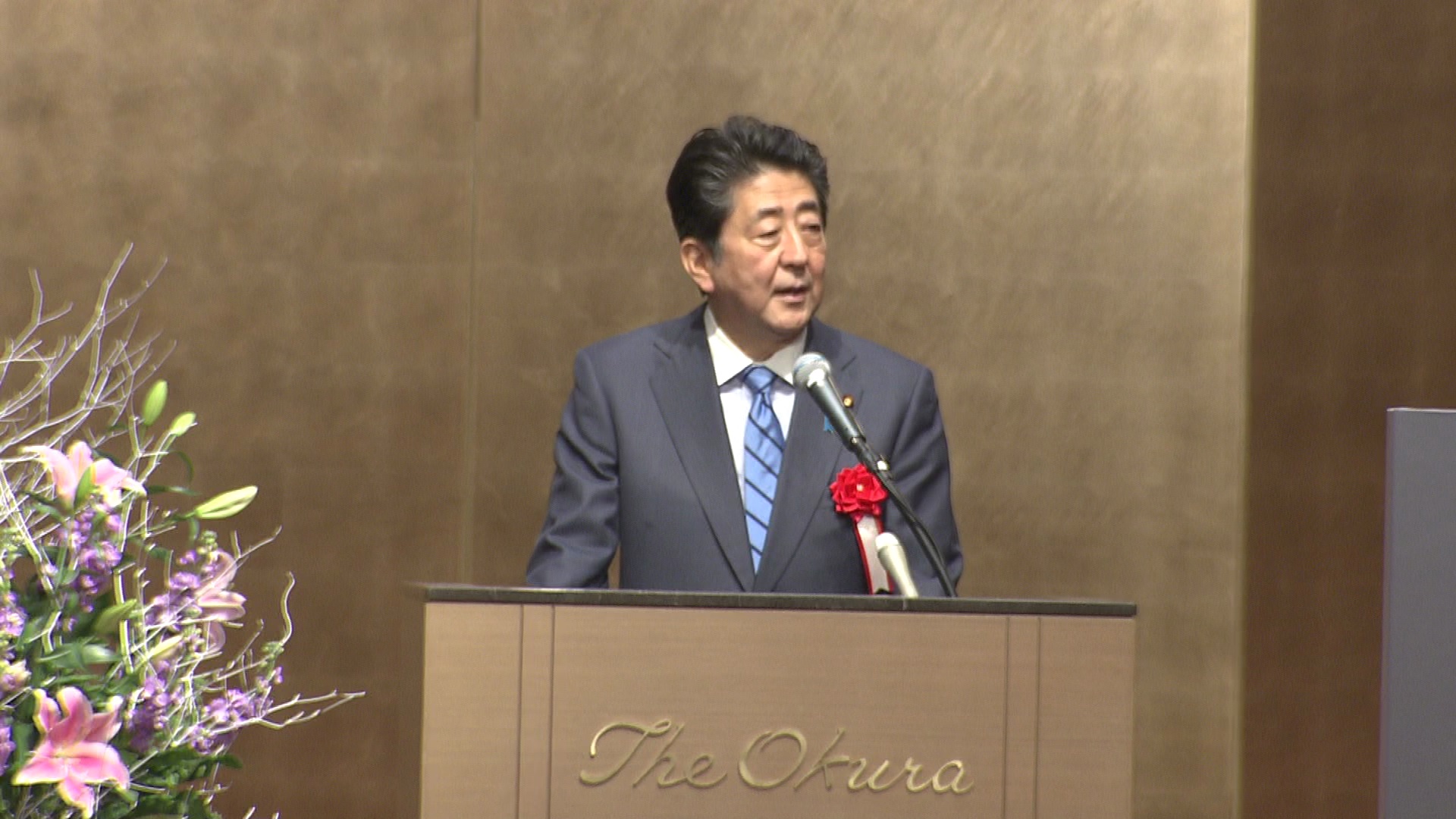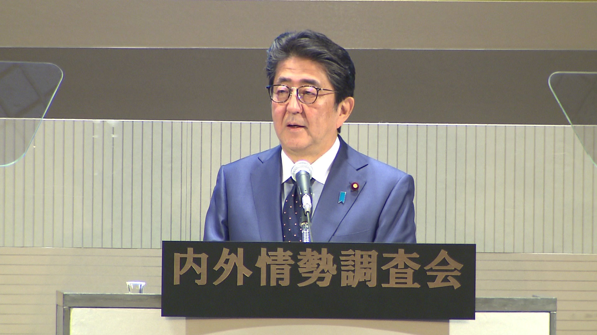 安倍总理在东京都内出席了由国内外形势调查会举办的全国恳谈会,并就当前的国内外课题发表了演讲。