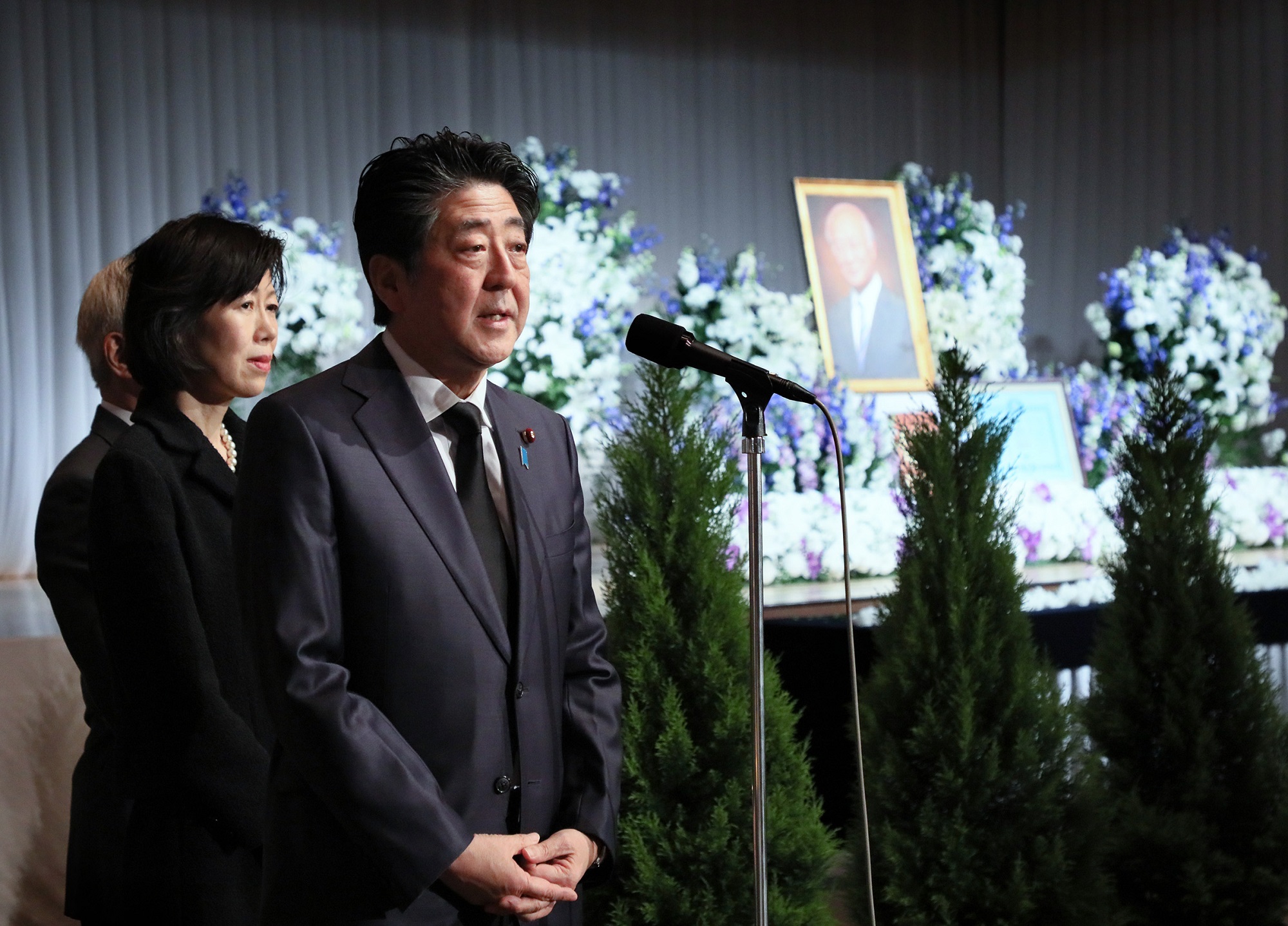 安倍総理出席了在东京都内举行的已故国际原子能机构(IAEA)总干事天野之弥的追思会。