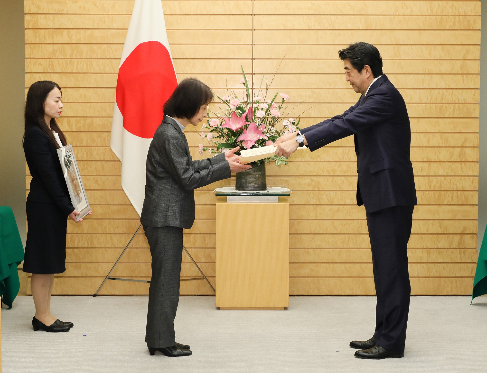 安倍总理在总理大臣官邸出席了女性绽放光彩先进企业表彰仪式。