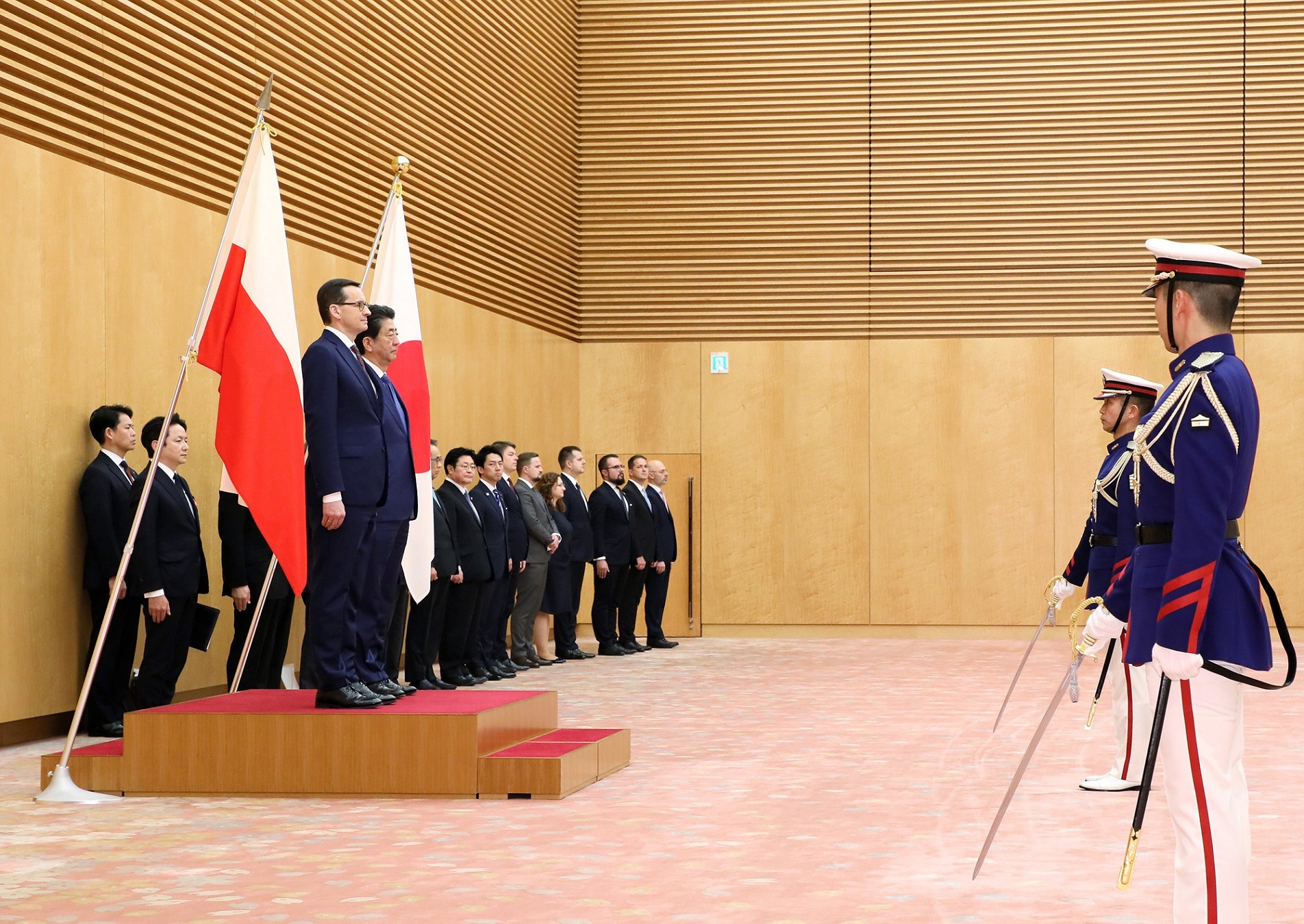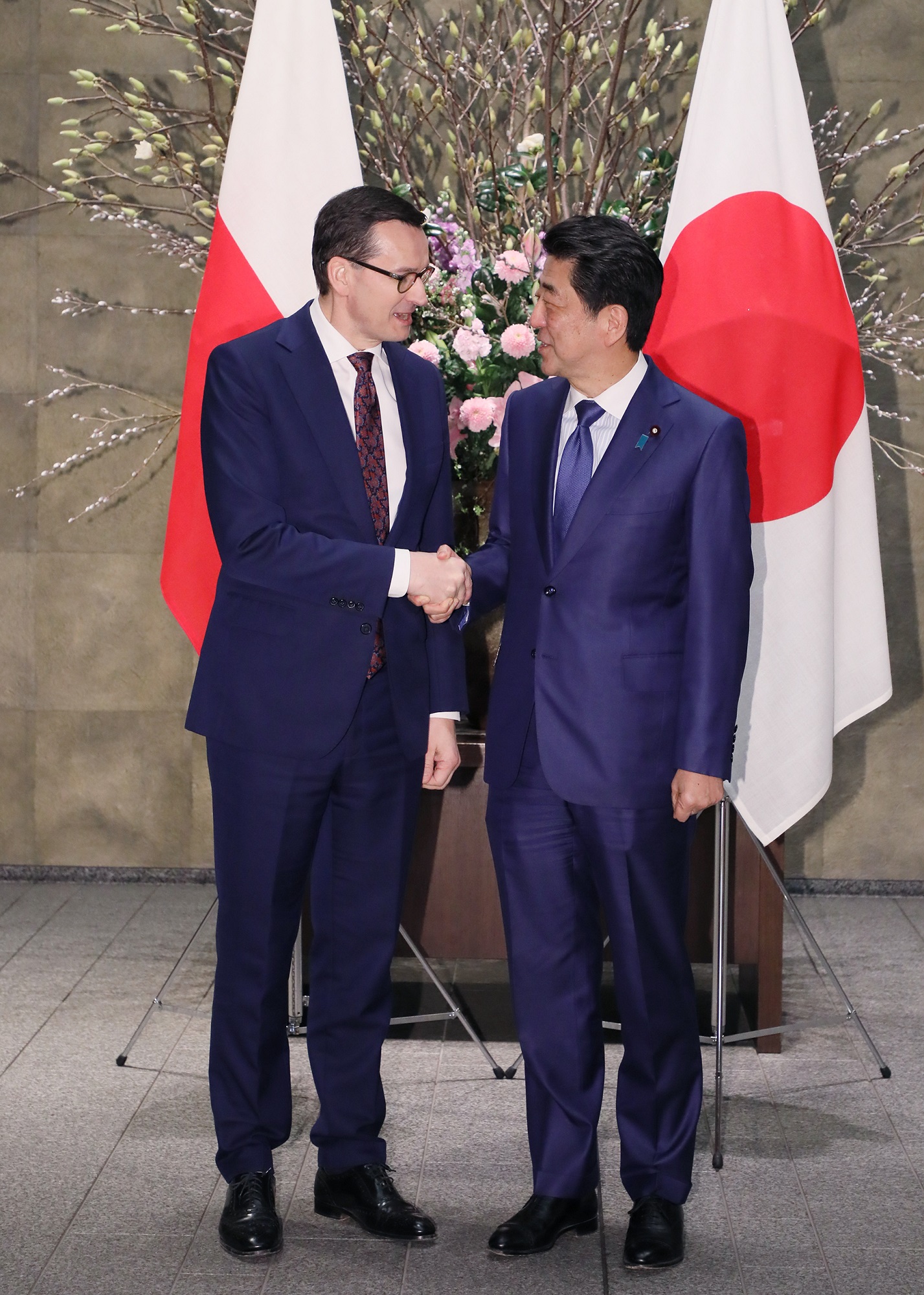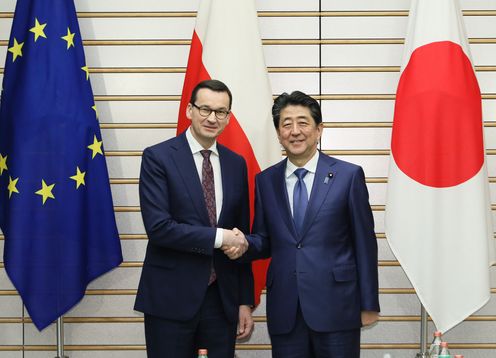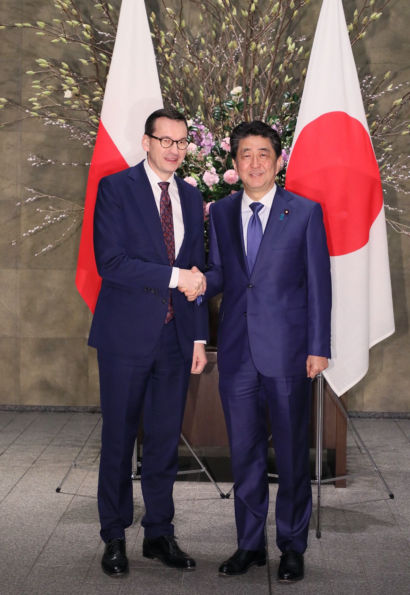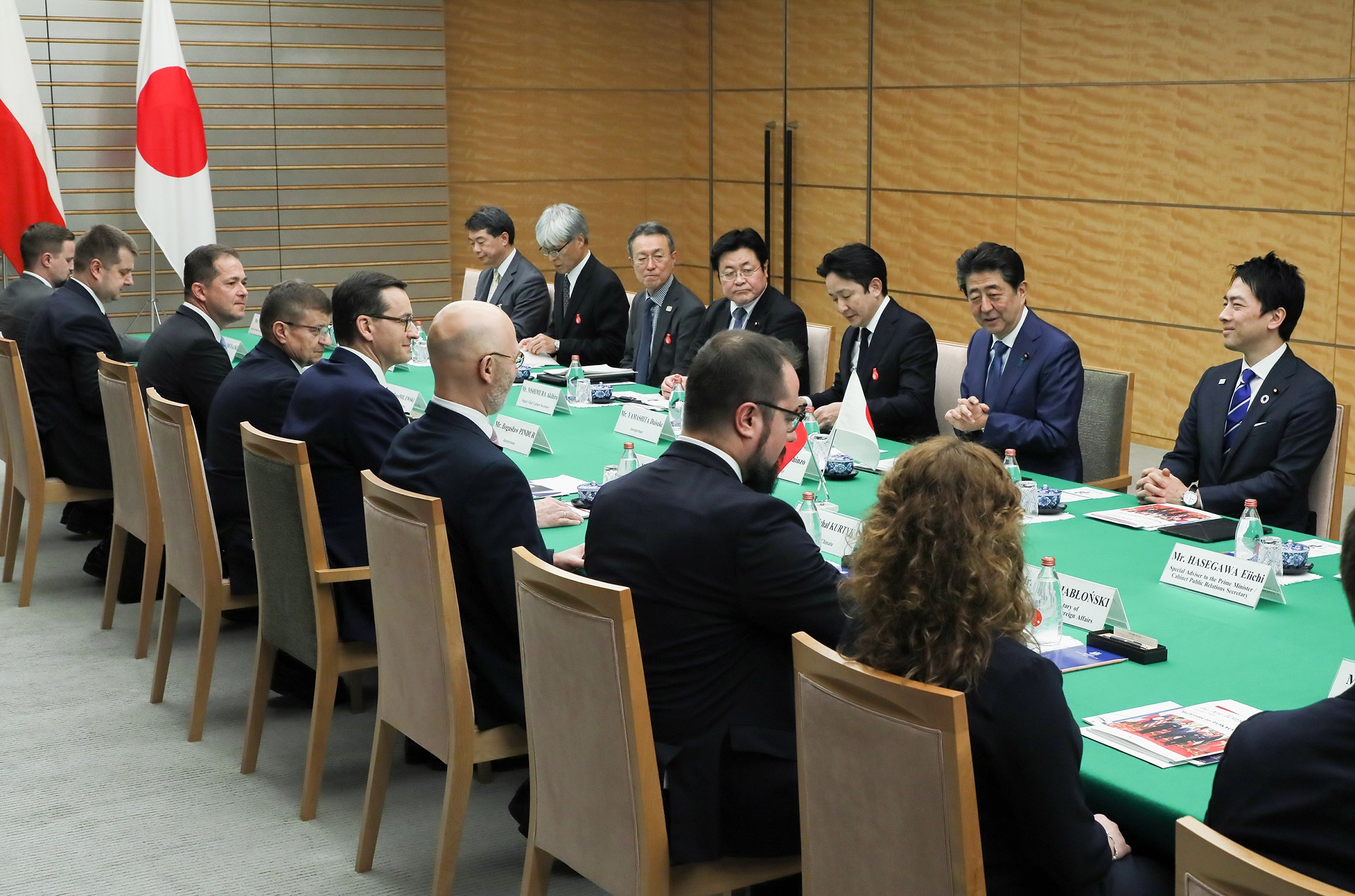 安倍总理在总理大臣官邸与波兰共和国总理马泰乌什・莫拉维茨基举行了首脑会谈等。