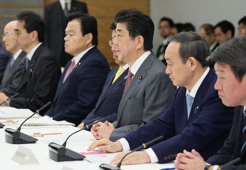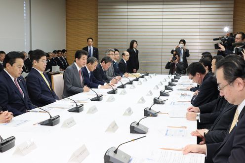 安倍总理在总理大臣官邸召开了有关新型冠状病毒感染症对策的相关阁僚会议。