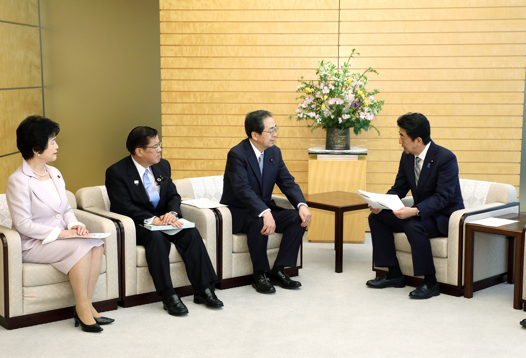 安倍总理在总理大臣官邸接收了公明党有关新型冠状病毒感染症对策的紧急建议。