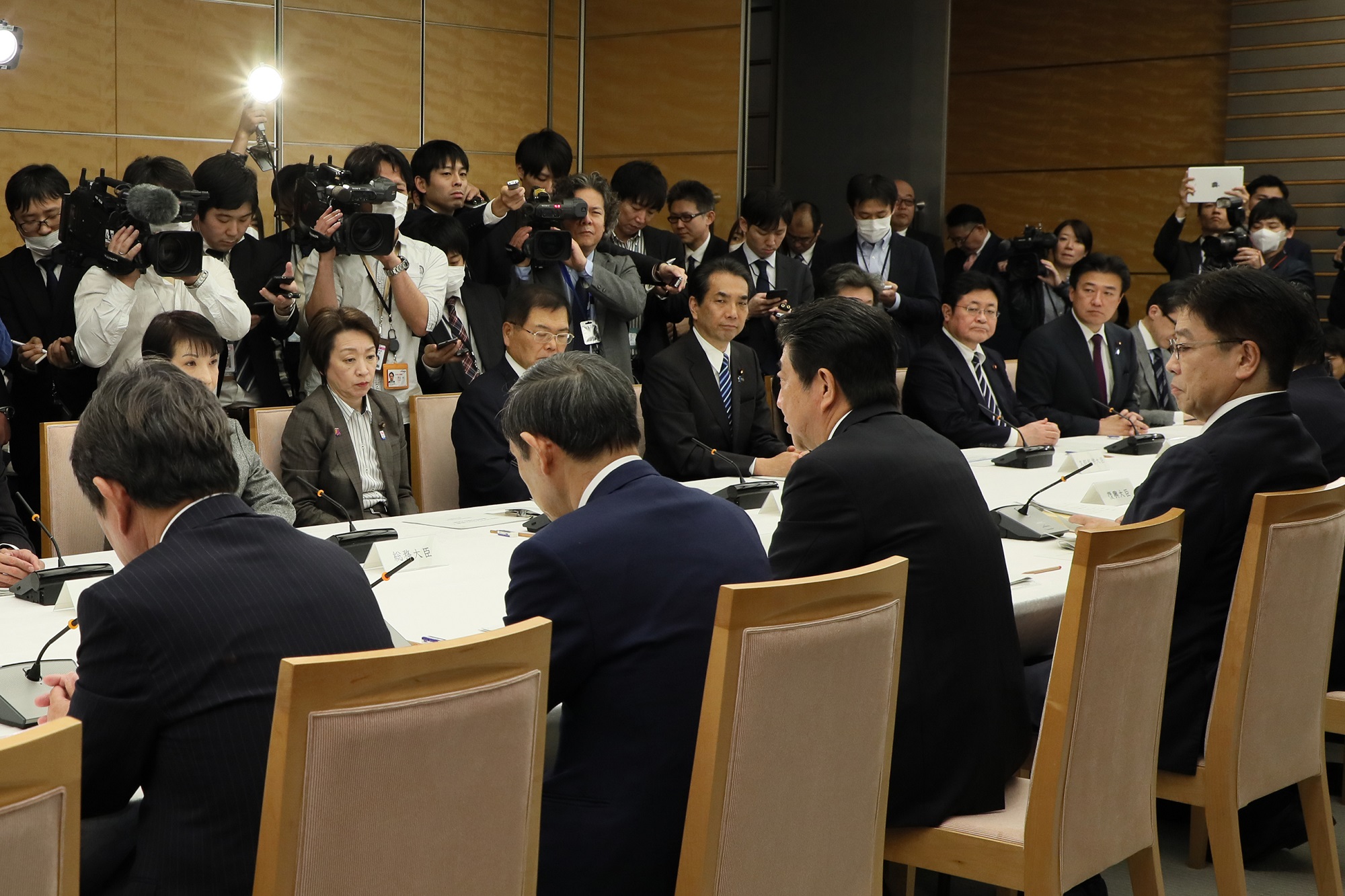 目前需要的是切实掌握当前的状况,我们国家、地方政府、医疗相关者、企业以及国民们团结一致,进一步推进对策。还请各位针对今后的发展形势,以厚生劳动大臣为中心推动开展工作,检讨向国民们及企业的信息提供机制、防止感染蔓延措施、医疗提供体制等方面应采取的对策,尽快向国民们公布综合性基本方针。