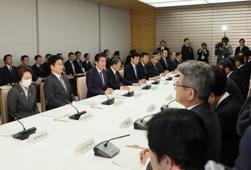 关于将新型冠状病毒感染症作为《新型流感等对策特别措施法》对象的法律修订,为了能够在下周迅速地提交给国会,我们正推进着准备工作。请以西村大臣为主、相关大臣为辅,为尽早将法案提交国会并获得通过,全力开展工作。”