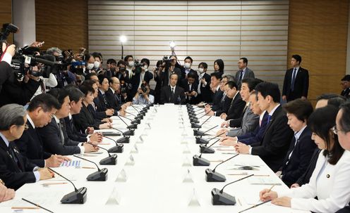 当前,控制疫情扩大是最优先的工作,但为了使日本经济在疫情结束后重新回到切实的增长轨道上,我们考虑采取一气呵成的果断措施。为了制定具体的政策,我们将从明天起,以这次疫情扩大而受影响的领域为中心,迅速广泛召集各阶层的有识之士,倾听地区的心声、一线的心声,集中听取情况说明。我们将倾听这样的心声,充分掌握地区经济的实际情况,政府与执政党为克服难关团结一致,细致探讨真正需要的政策。
