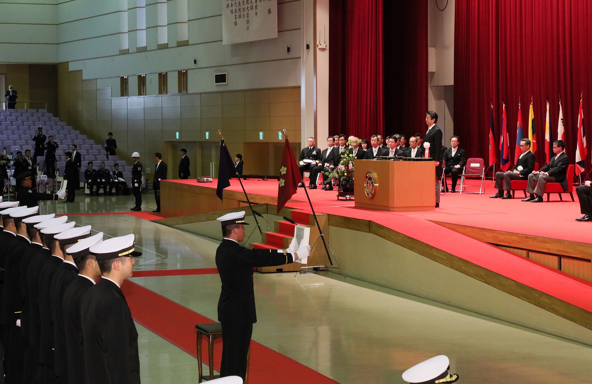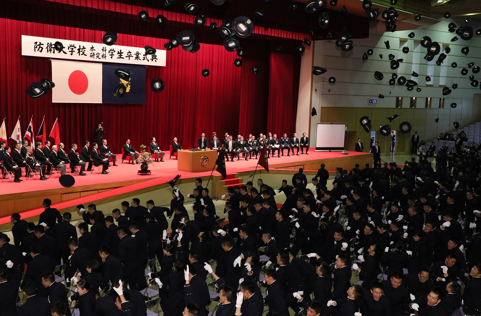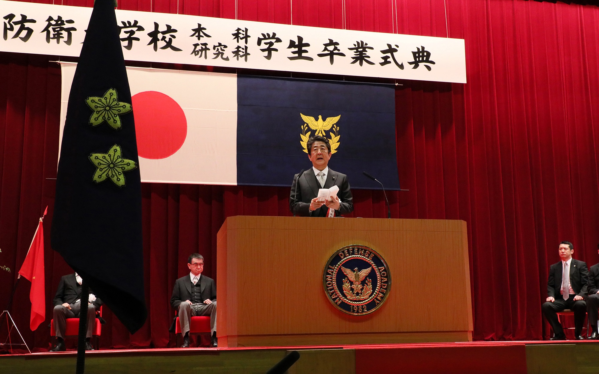 安倍总理出席了位于神奈川县横须贺市的防卫大学校的毕业典礼,并作为自卫队最高指挥官对毕业生作了训示。