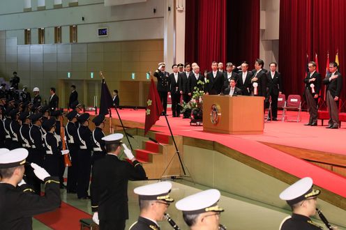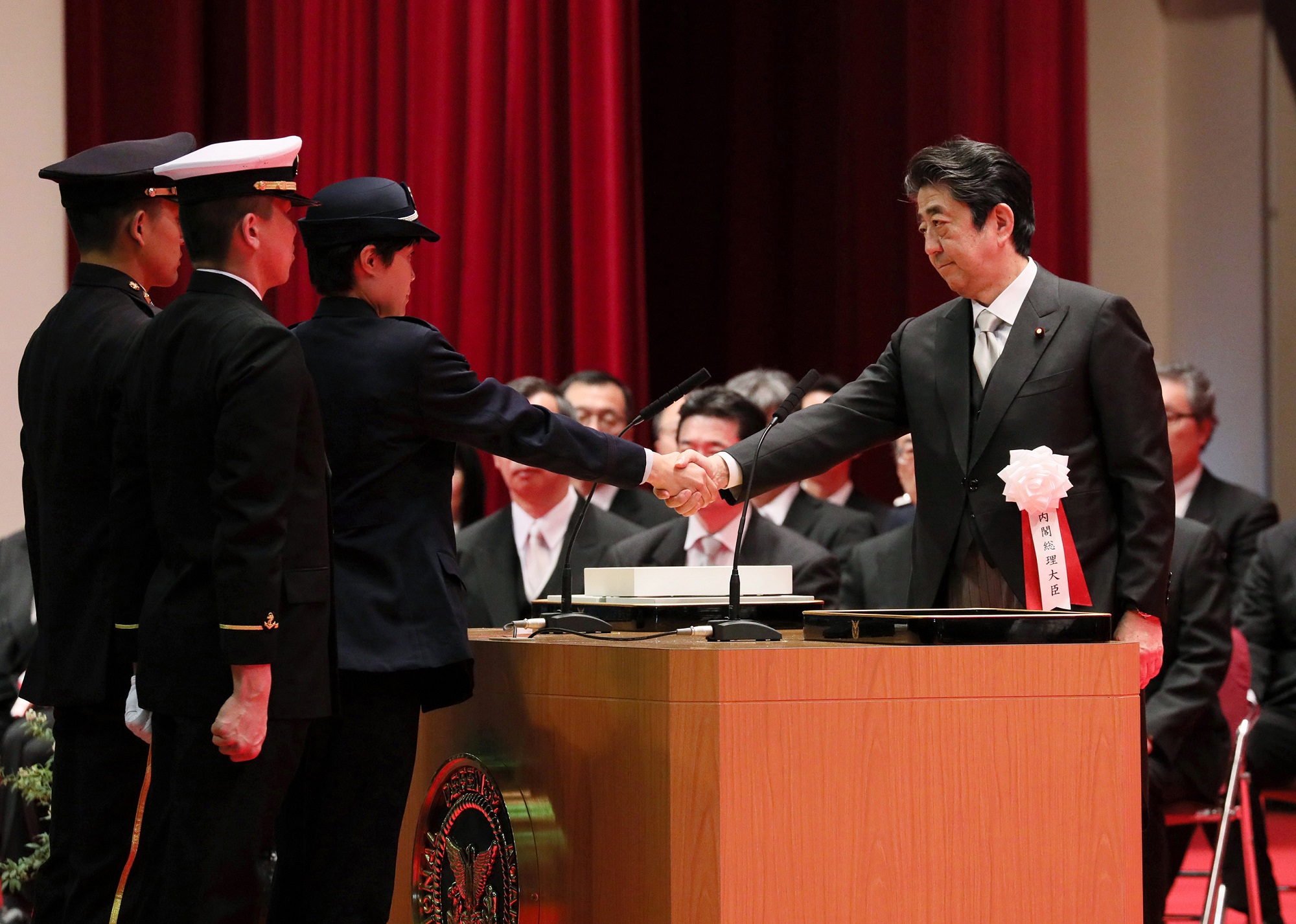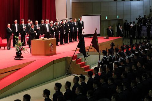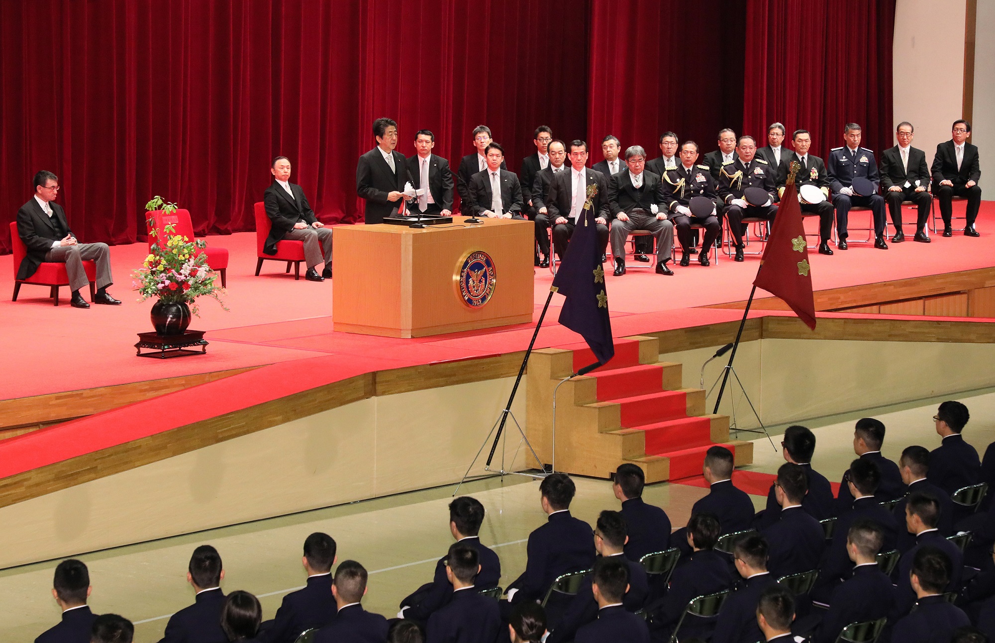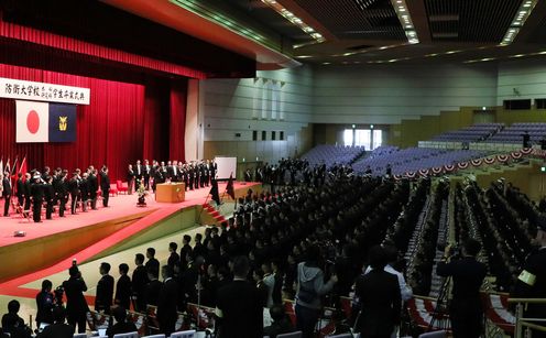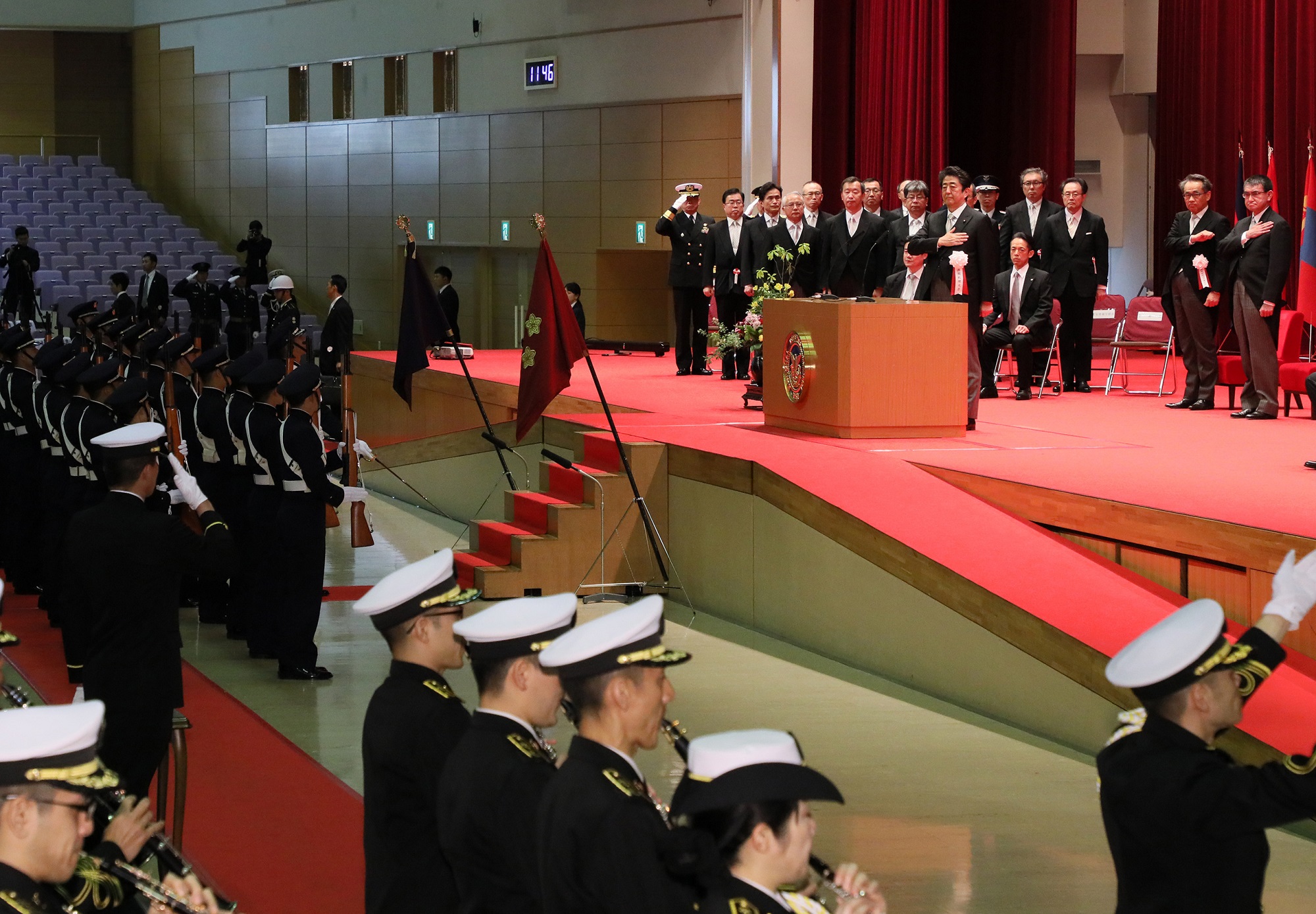 安倍总理出席了位于神奈川县横须贺市的防卫大学校的毕业典礼,并作为自卫队最高指挥官对毕业生作了训示。